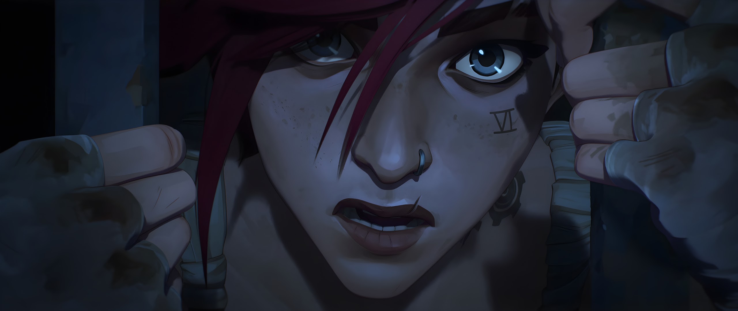 Arcane, Vi, Animated Series, Character Portrait 5K Desktop and Mobile Wallpaper Background with a maximum resolution of 7680x3265 px.