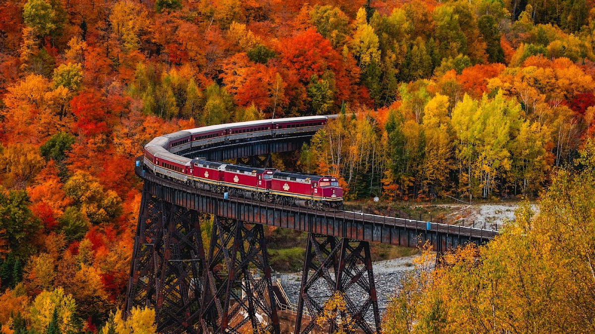 Autumn Train, Foliage, Scenic Railway, Fall Colors 5K Desktop Wallpaper