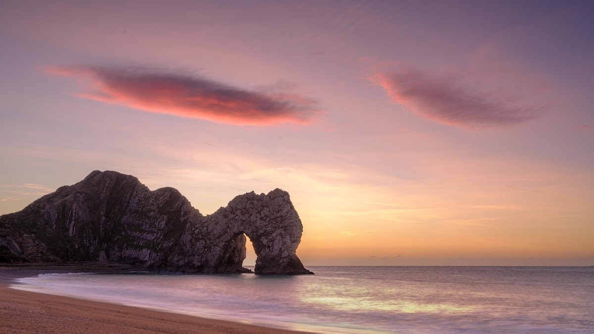 Coastal, Sunset, Arch, Landscape 10K Desktop Wallpaper
