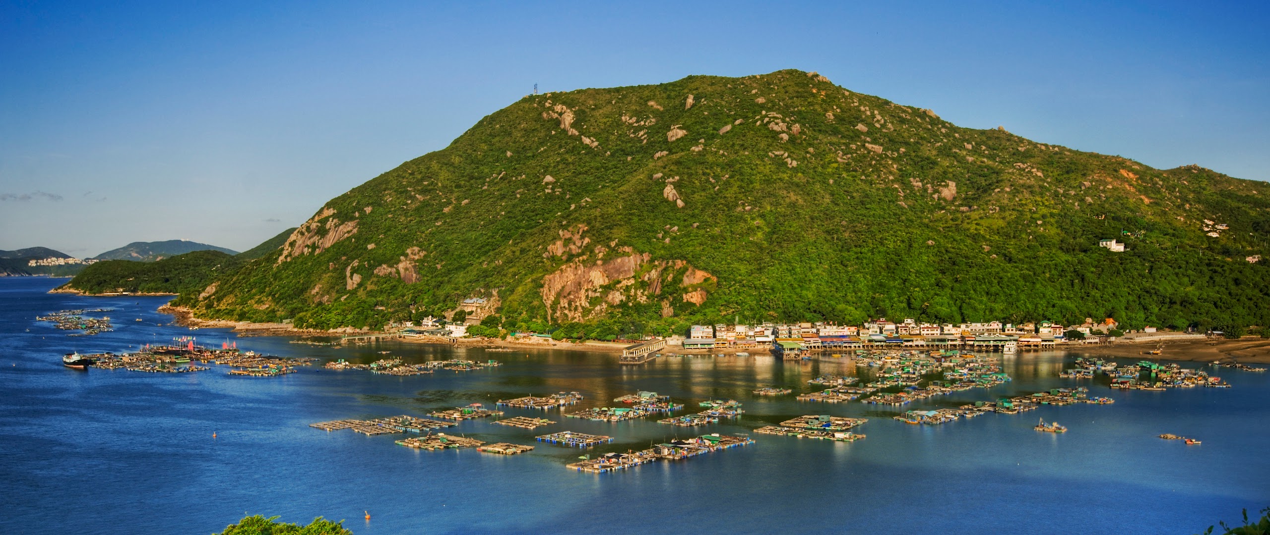 Coastal Village, Fishing Farms, Lush Mountain, Island Scenery 4K Desktop Wallpaper
