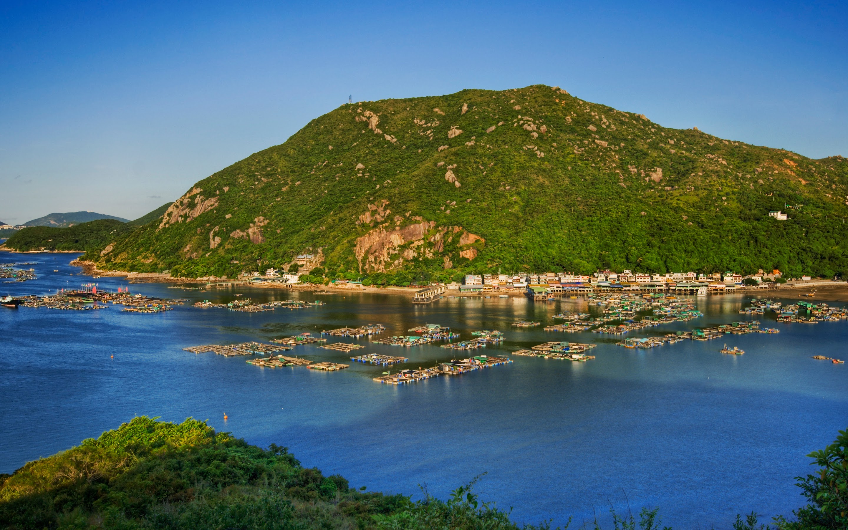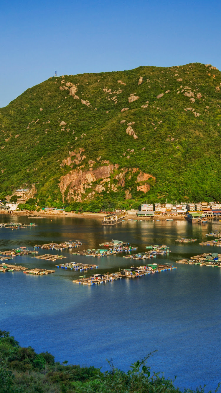 Coastal Village, Fishing Farms, Lush Mountain, Island Scenery 4K Phone Wallpaper