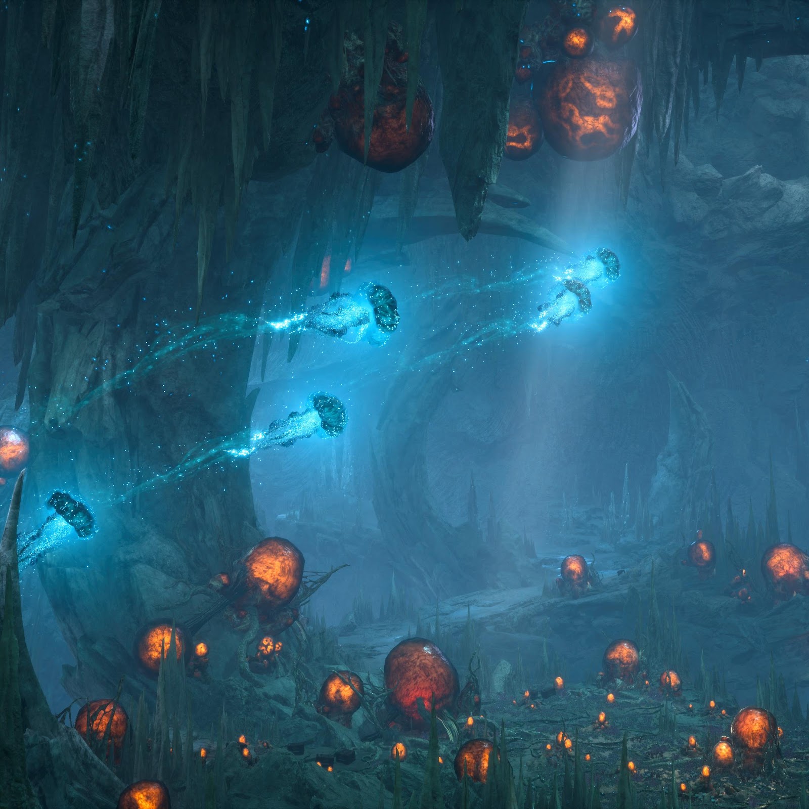 Fantasy, Cave, Glowing, Bioluminescent 4K Desktop and Mobile Wallpaper Background with a maximum resolution of 3840x2160 px.