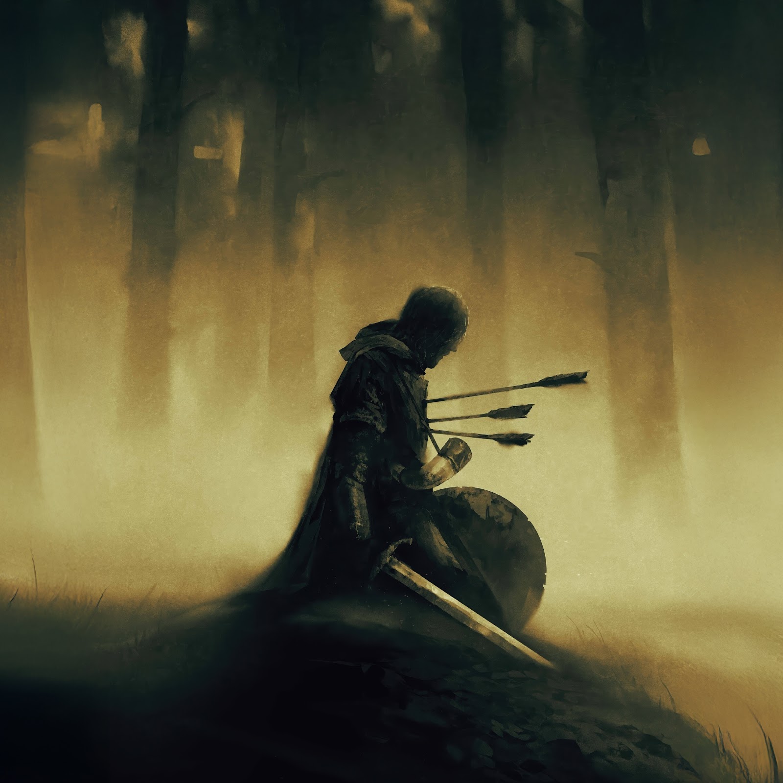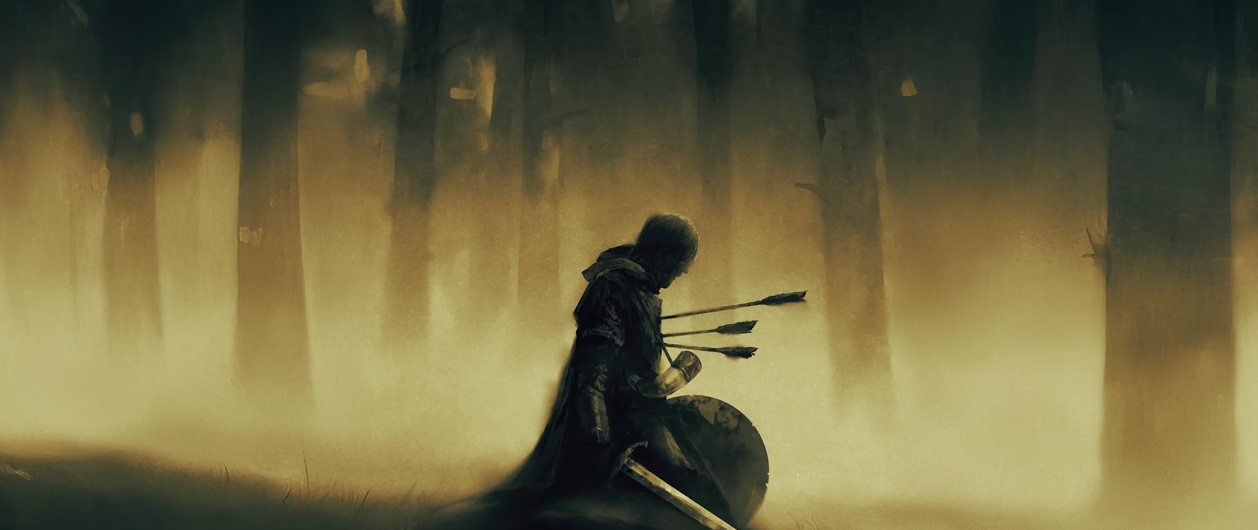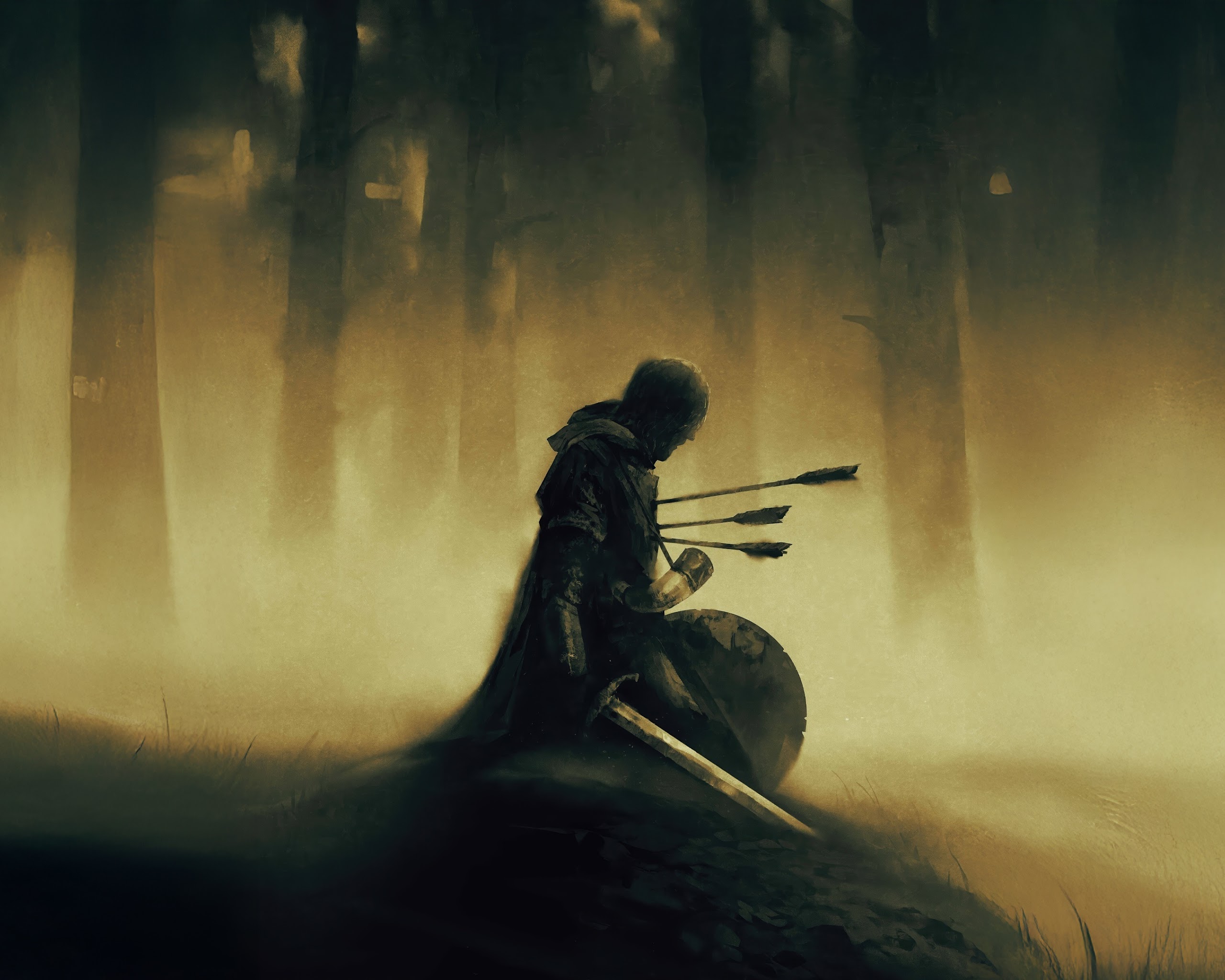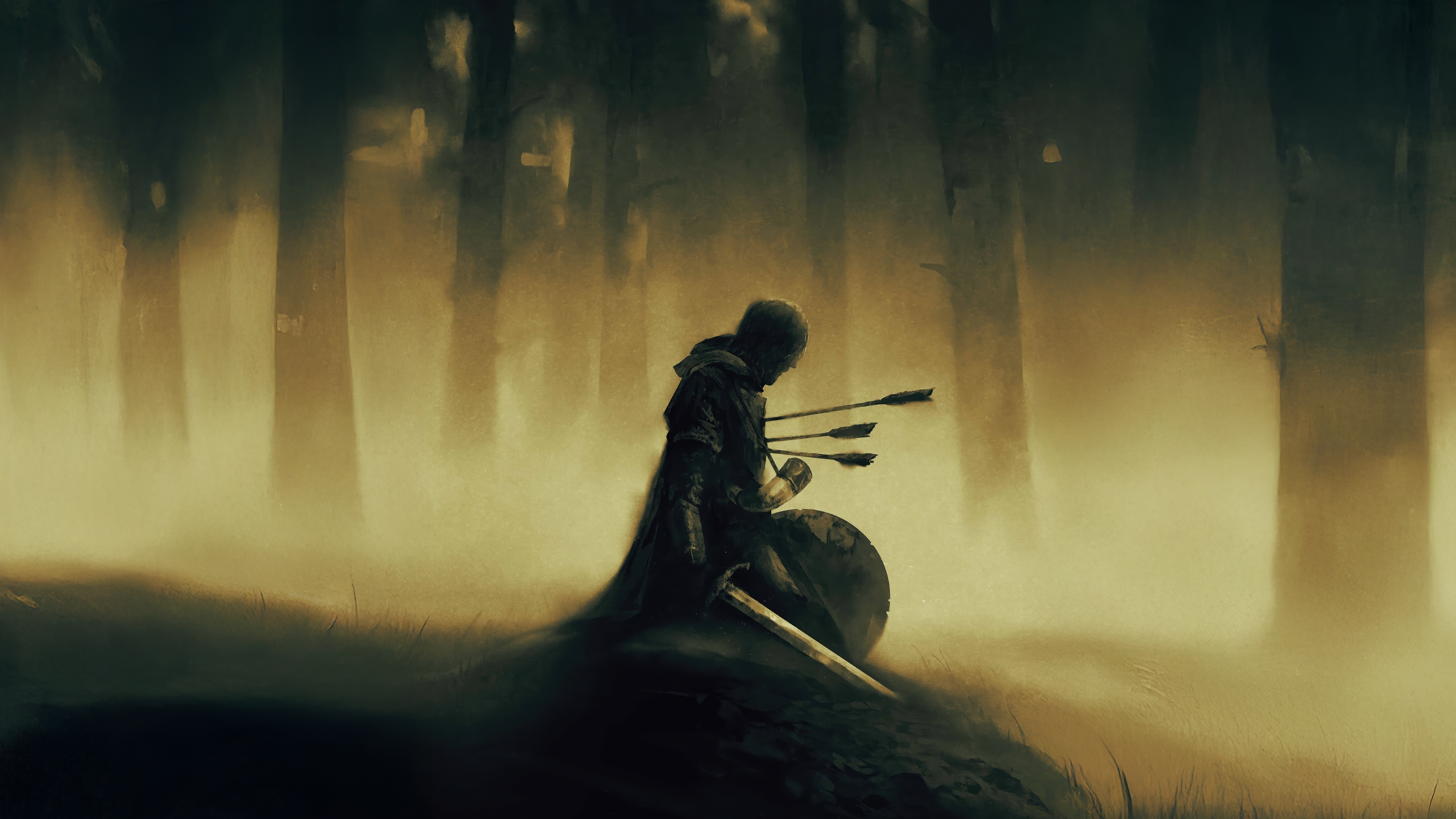 Fantasy, Knight, Arrows, Forest 4K Desktop and Mobile Wallpaper Background with a maximum resolution of 3840x2160 px.