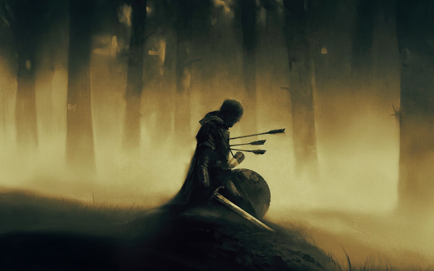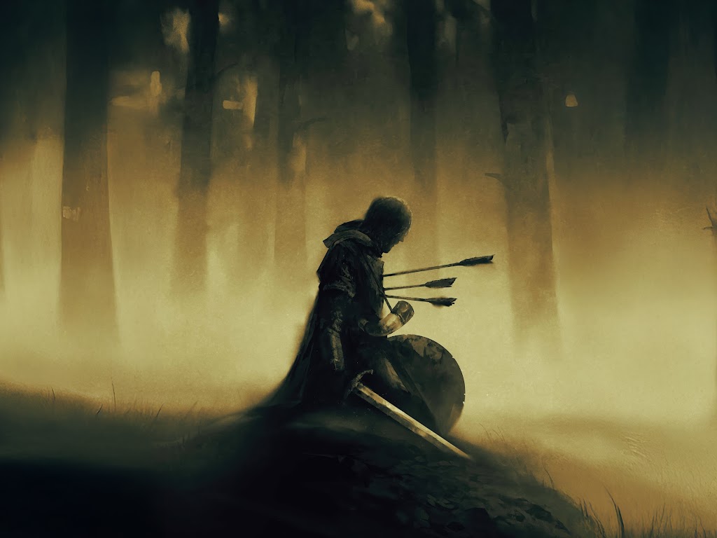 Fantasy, Knight, Arrows, Forest 4K Desktop and Mobile Wallpaper Background with a maximum resolution of 3840x2160 px.