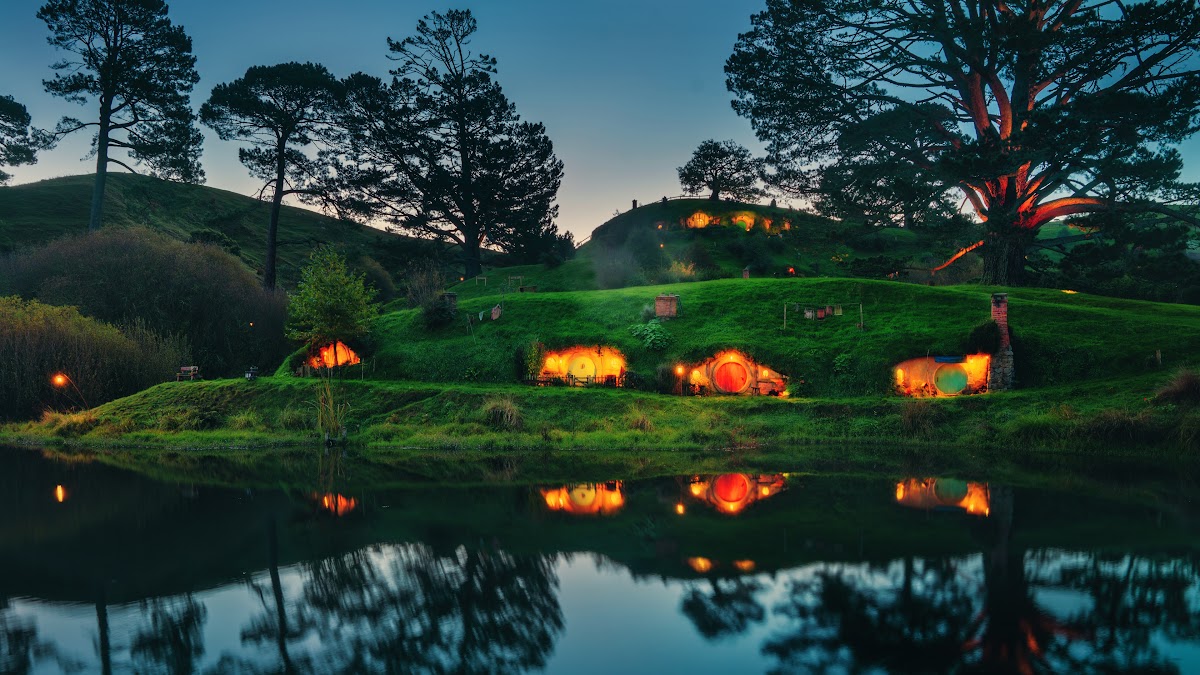 Hobbiton, Shire, Fantasy Landscape, Reflection 4K Desktop Wallpaper