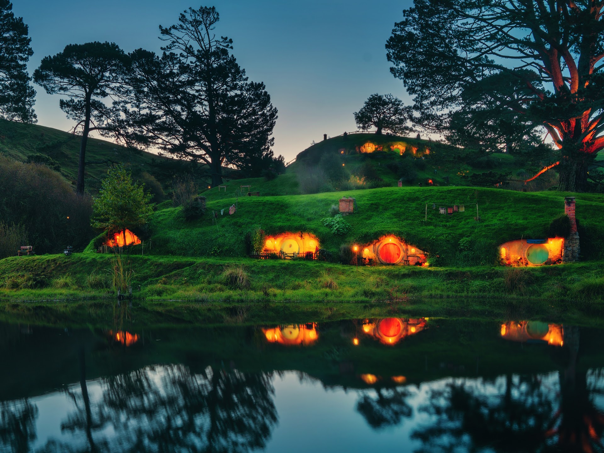 Hobbiton, Shire, Fantasy Landscape, Reflection 4K Desktop Wallpaper