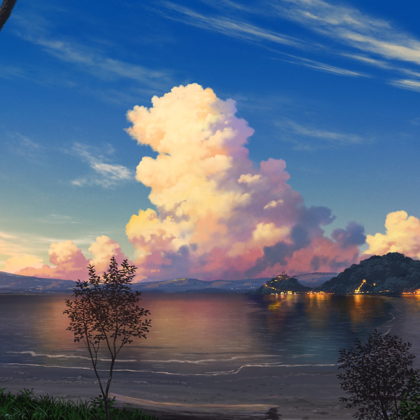 Landscape, Seascape, Anime, Clouds 4K Desktop and Mobile Wallpaper Background with a maximum resolution of 3913x2296 px.