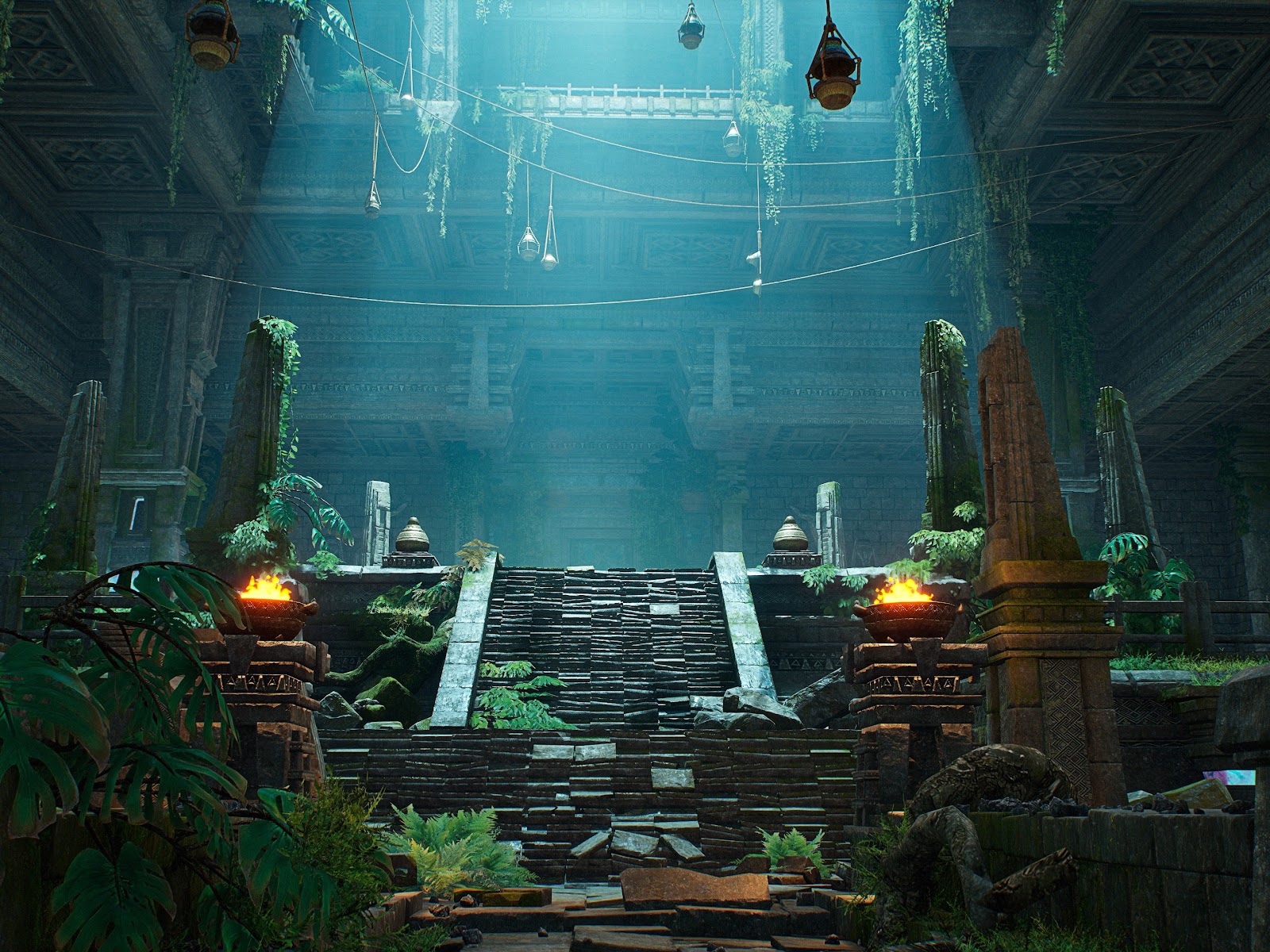 Lost Temple, Ancient Ruins, Jungle Scene, Fantasy Environment 4K Desktop and Mobile Wallpaper Background with a maximum resolution of 3840x2160 px.