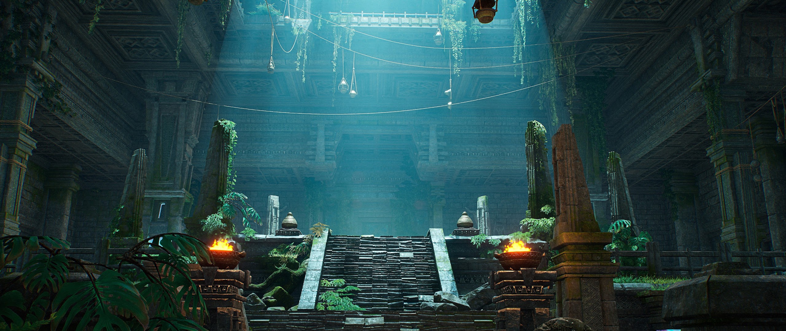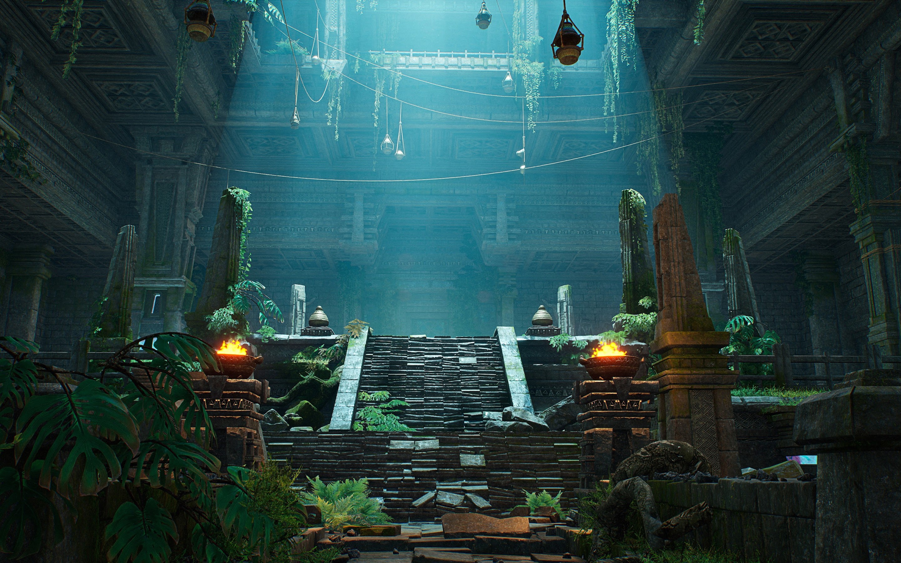 Lost Temple, Ancient Ruins, Jungle Scene, Fantasy Environment 4K Desktop and Mobile Wallpaper Background with a maximum resolution of 3840x2160 px.