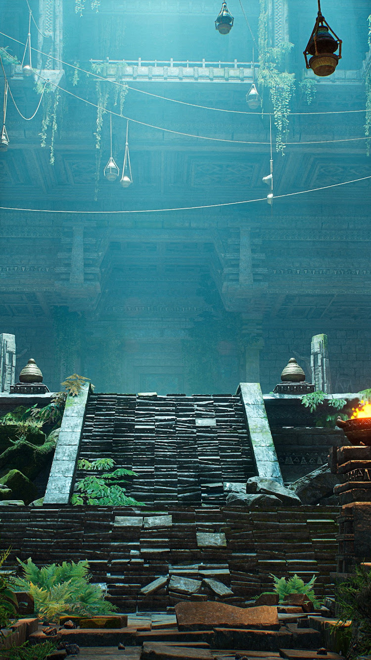 Lost Temple, Ancient Ruins, Jungle Scene, Fantasy Environment 4K Phone Wallpaper