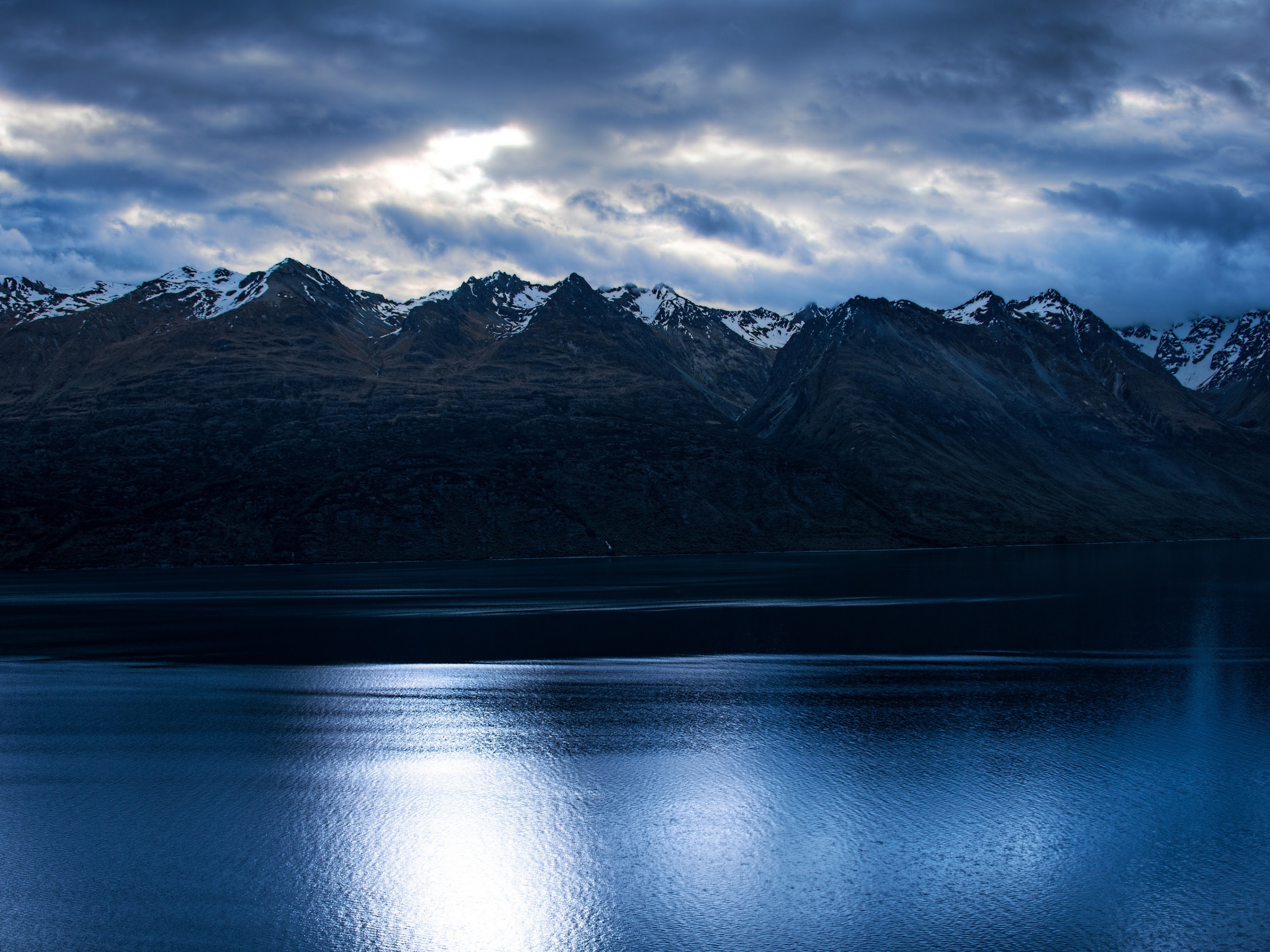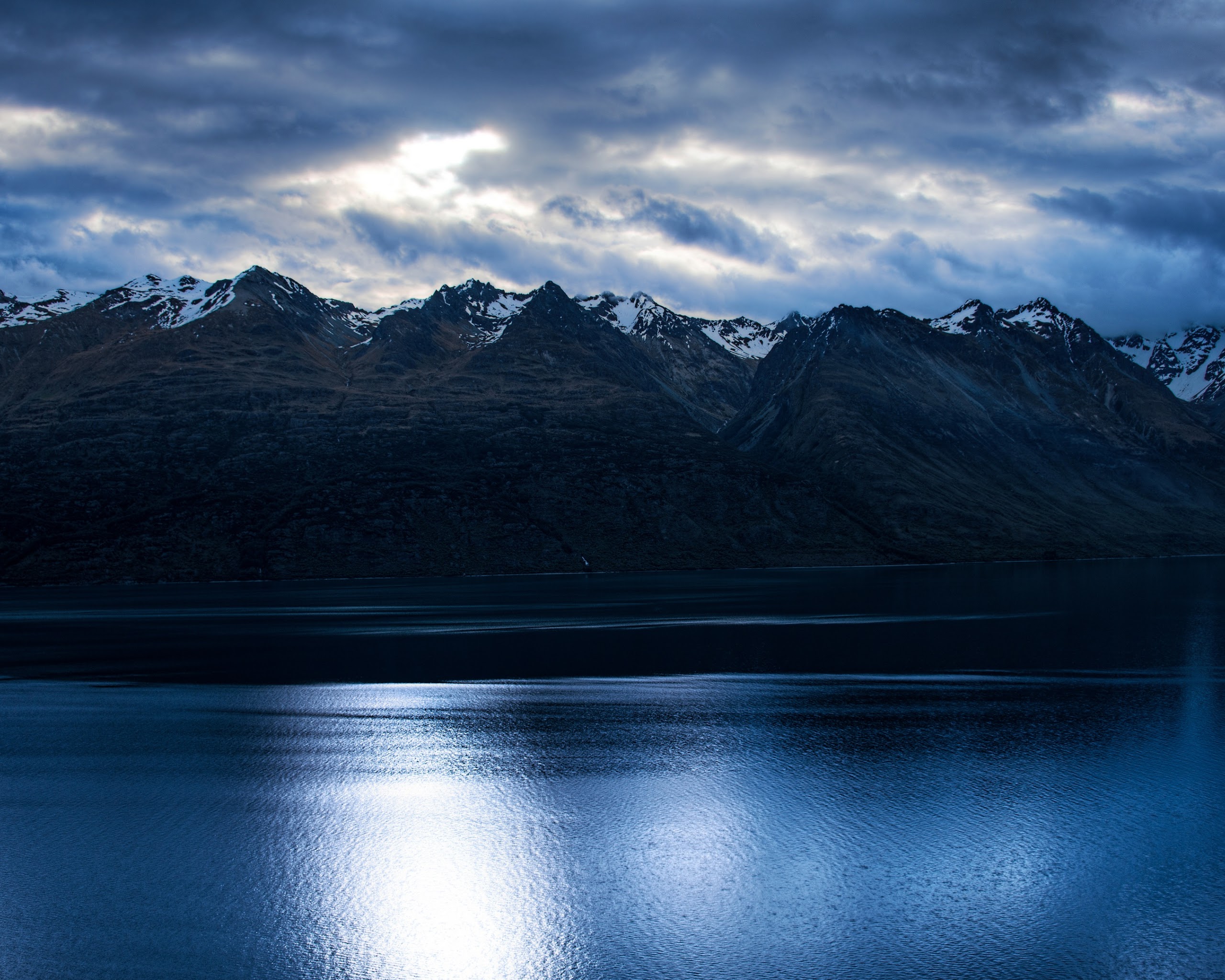 Mountain Lake, Dark Sky, Scenic Landscape, Nature Photography 4K Desktop Wallpaper