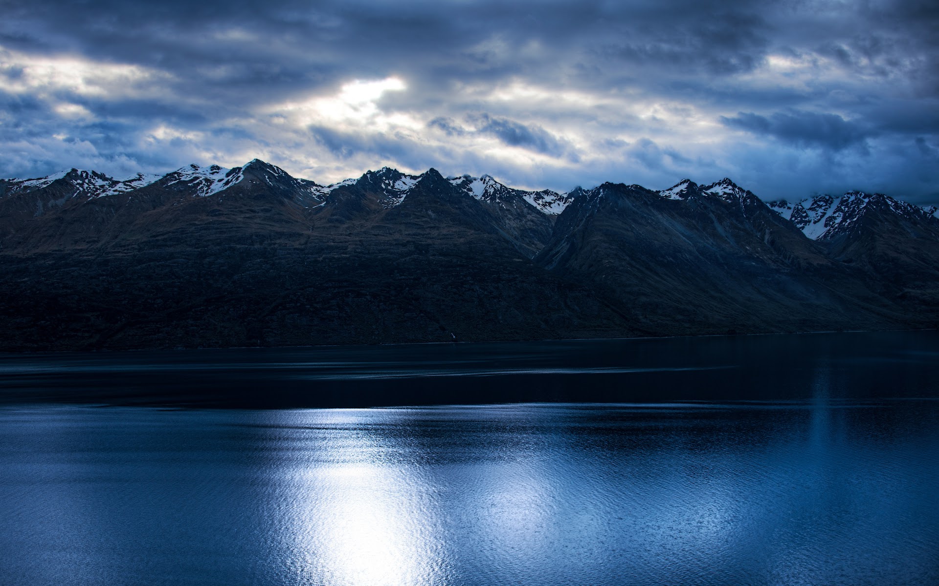 Mountain Lake, Dark Sky, Scenic Landscape, Nature Photography 4K Desktop and Mobile Wallpaper Background with a maximum resolution of 3840x2160 px.