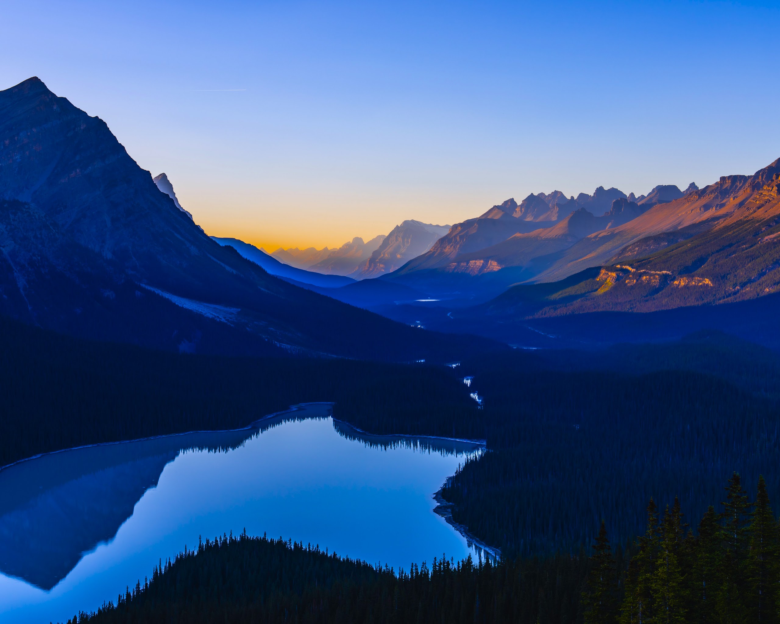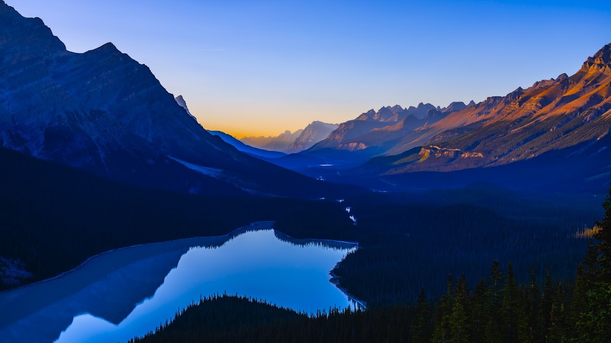 Mountain Landscape, Lake, Sunrise, Nature View 5K Desktop and Mobile Wallpaper Background with a maximum resolution of 5120x2880 px.
