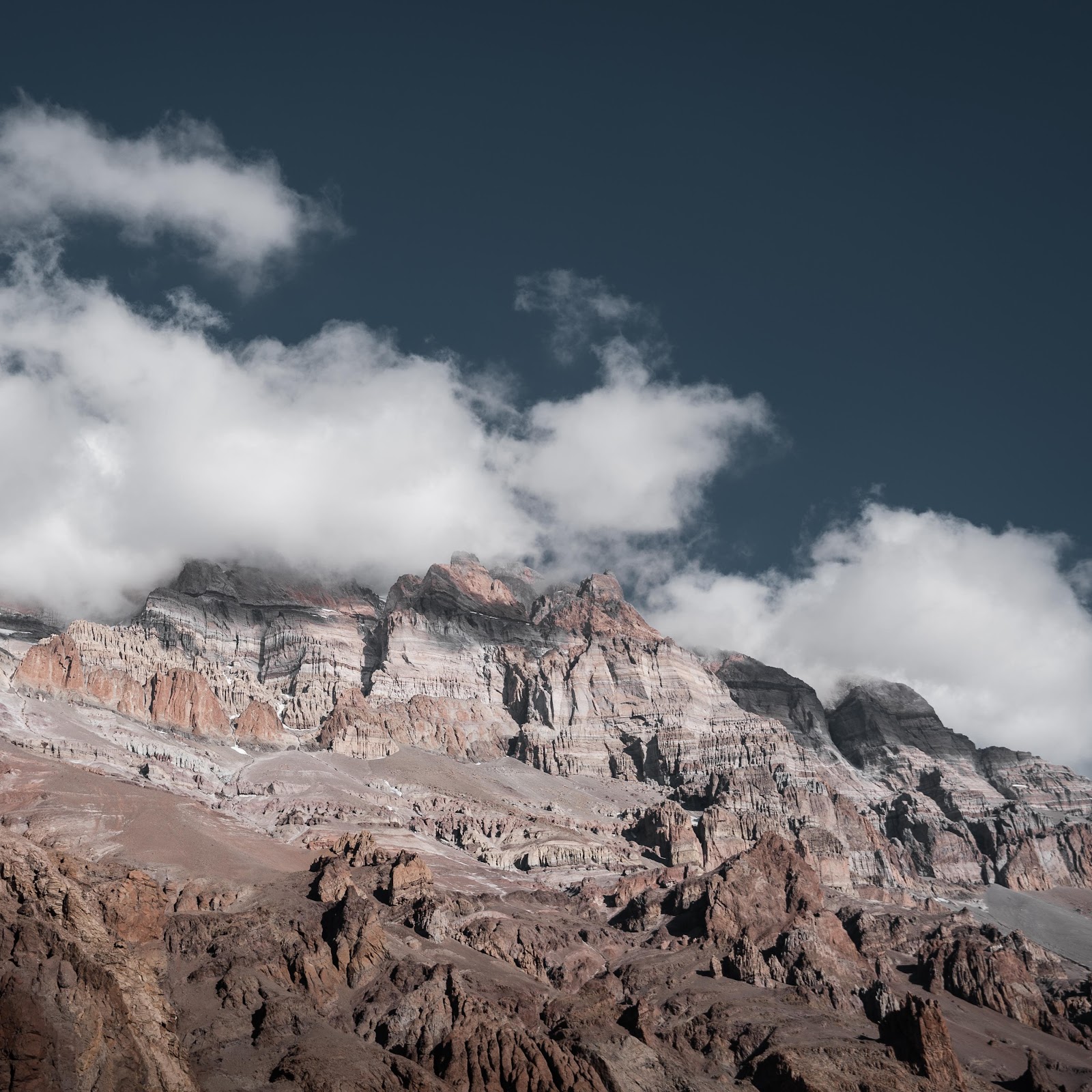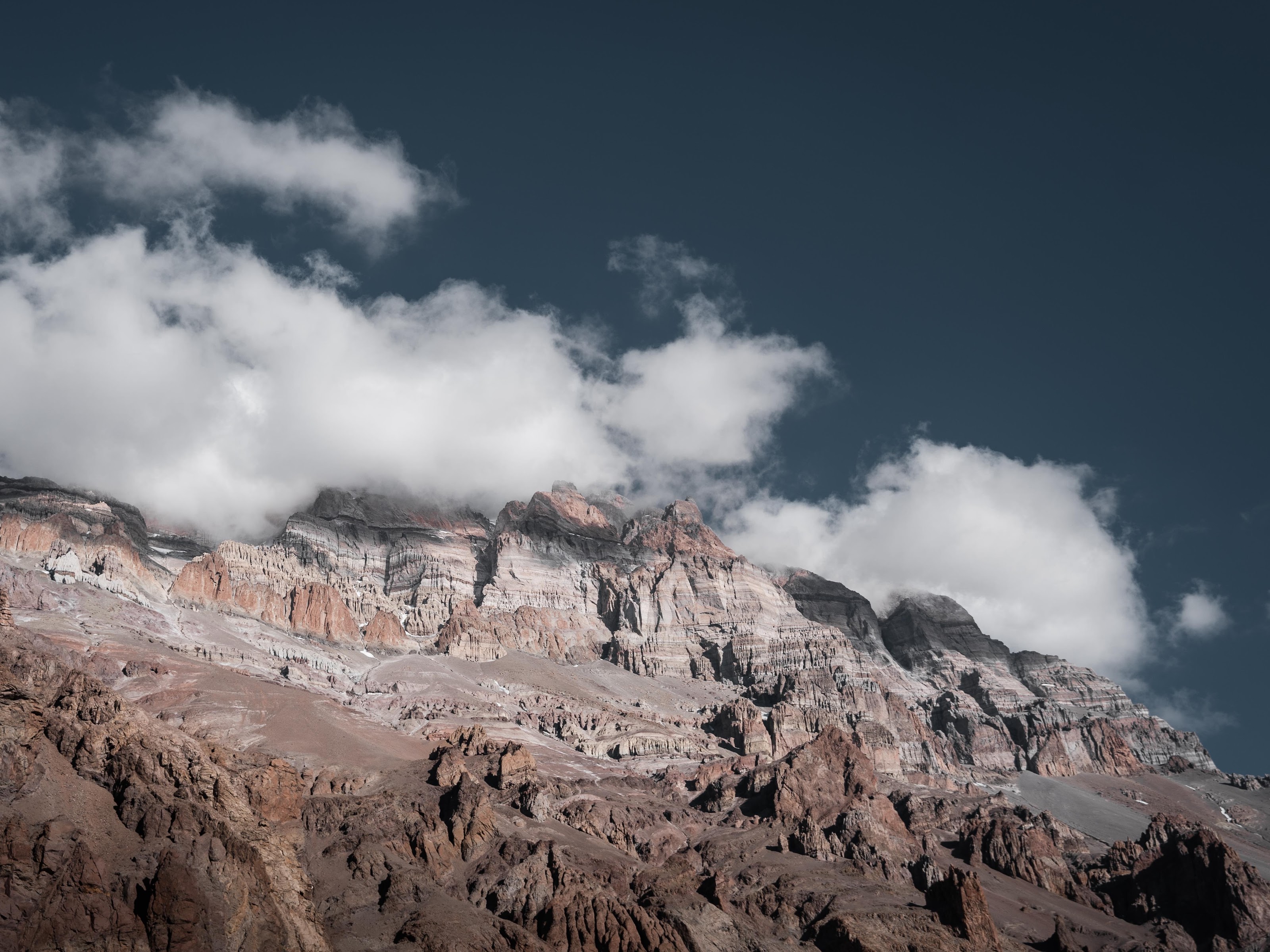 Mountain Range, Cloudscape, Rocky Peaks, Nature Landscape 5K Desktop Wallpaper