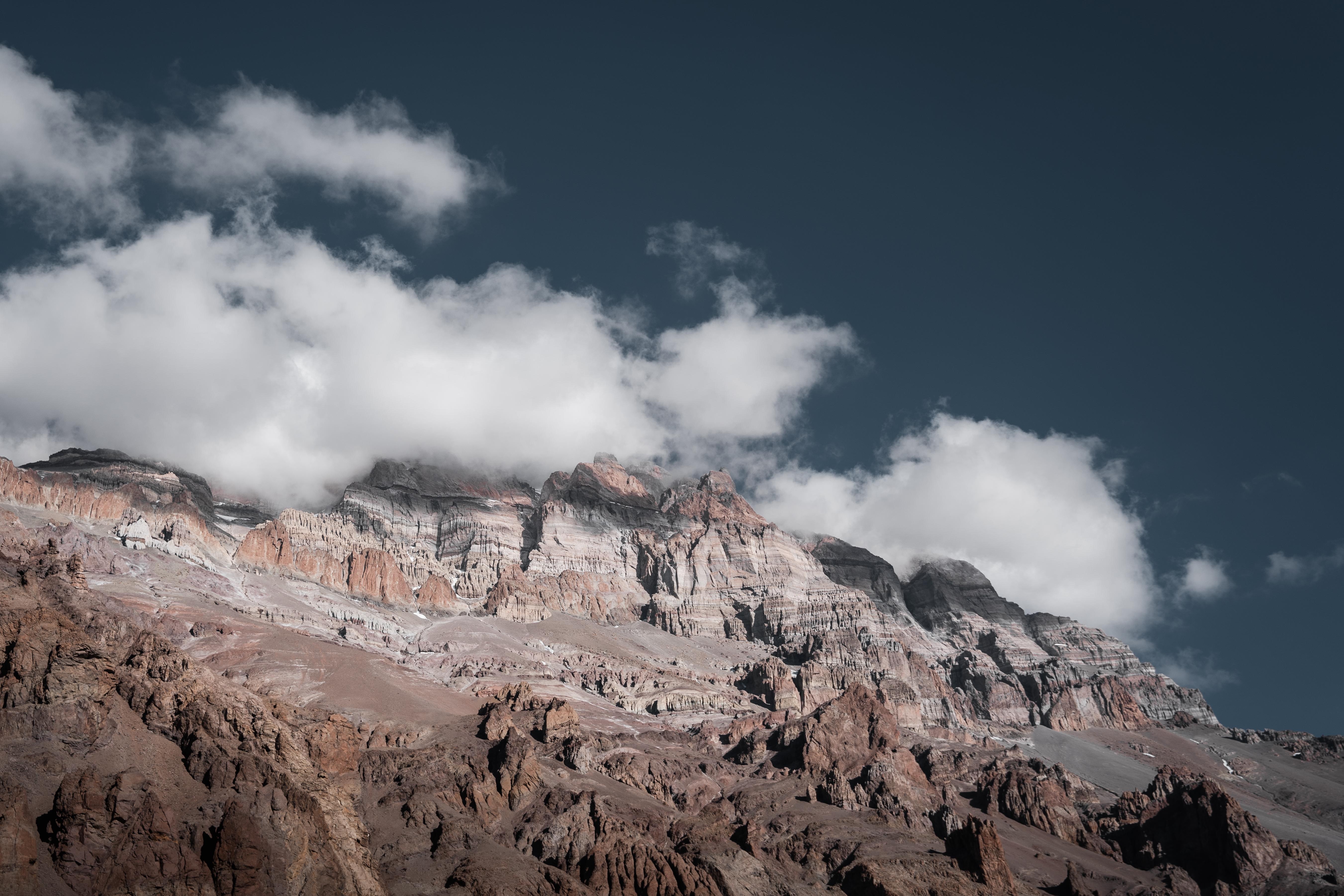 Mountain Range, Cloudscape, Rocky Peaks, Nature Landscape 5K Desktop Wallpaper