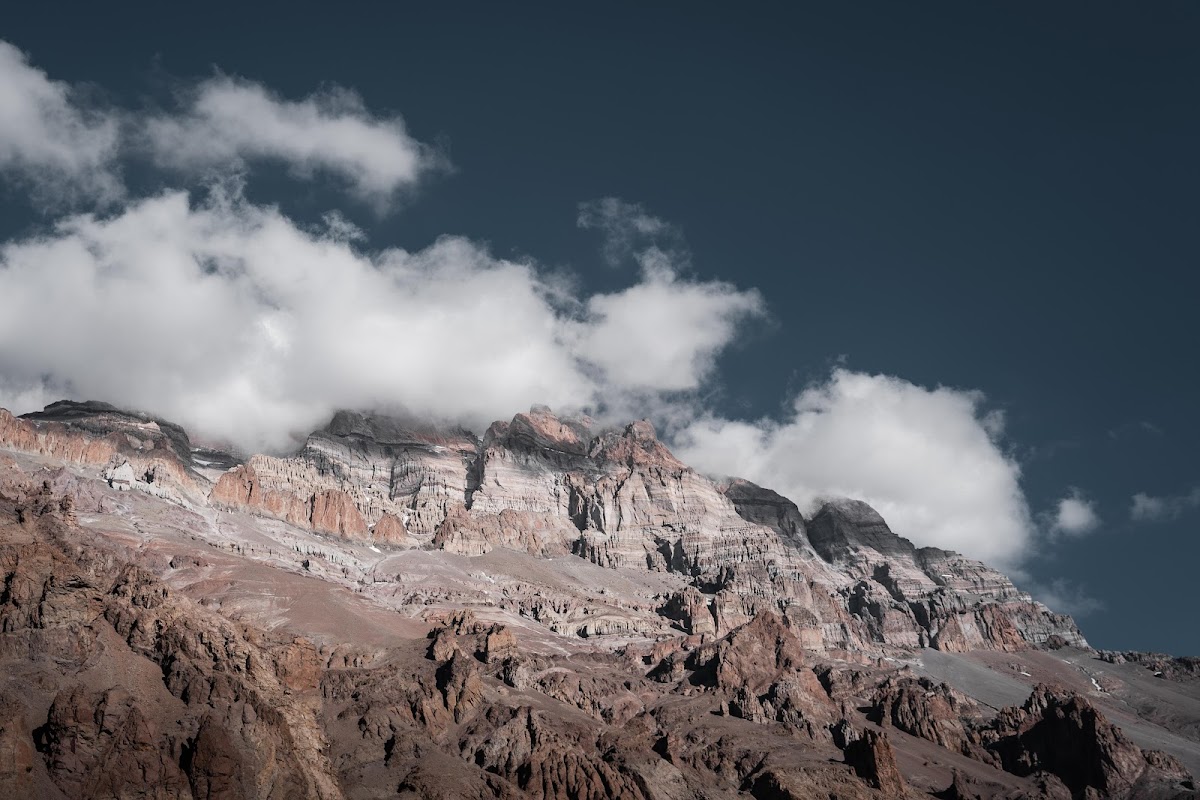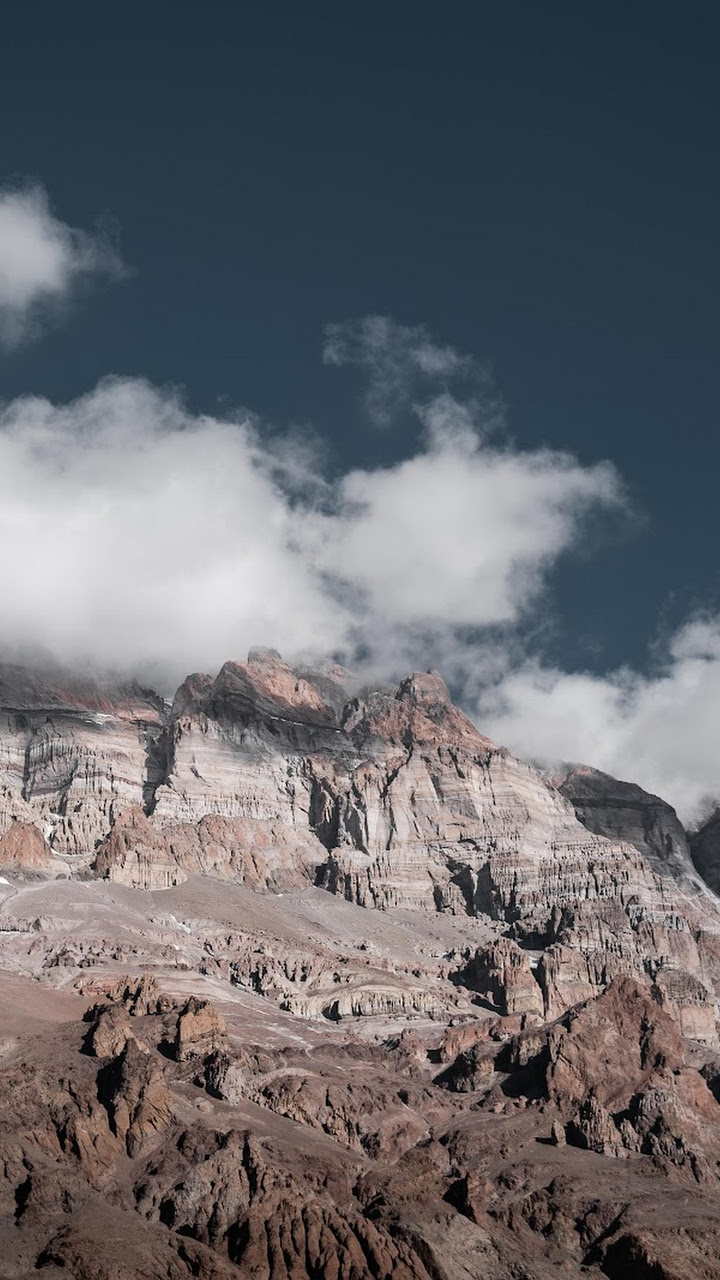 Mountain Range, Cloudscape, Rocky Peaks, Nature Landscape 5K Desktop and Mobile Wallpaper Background with a maximum resolution of 5405x3603 px.