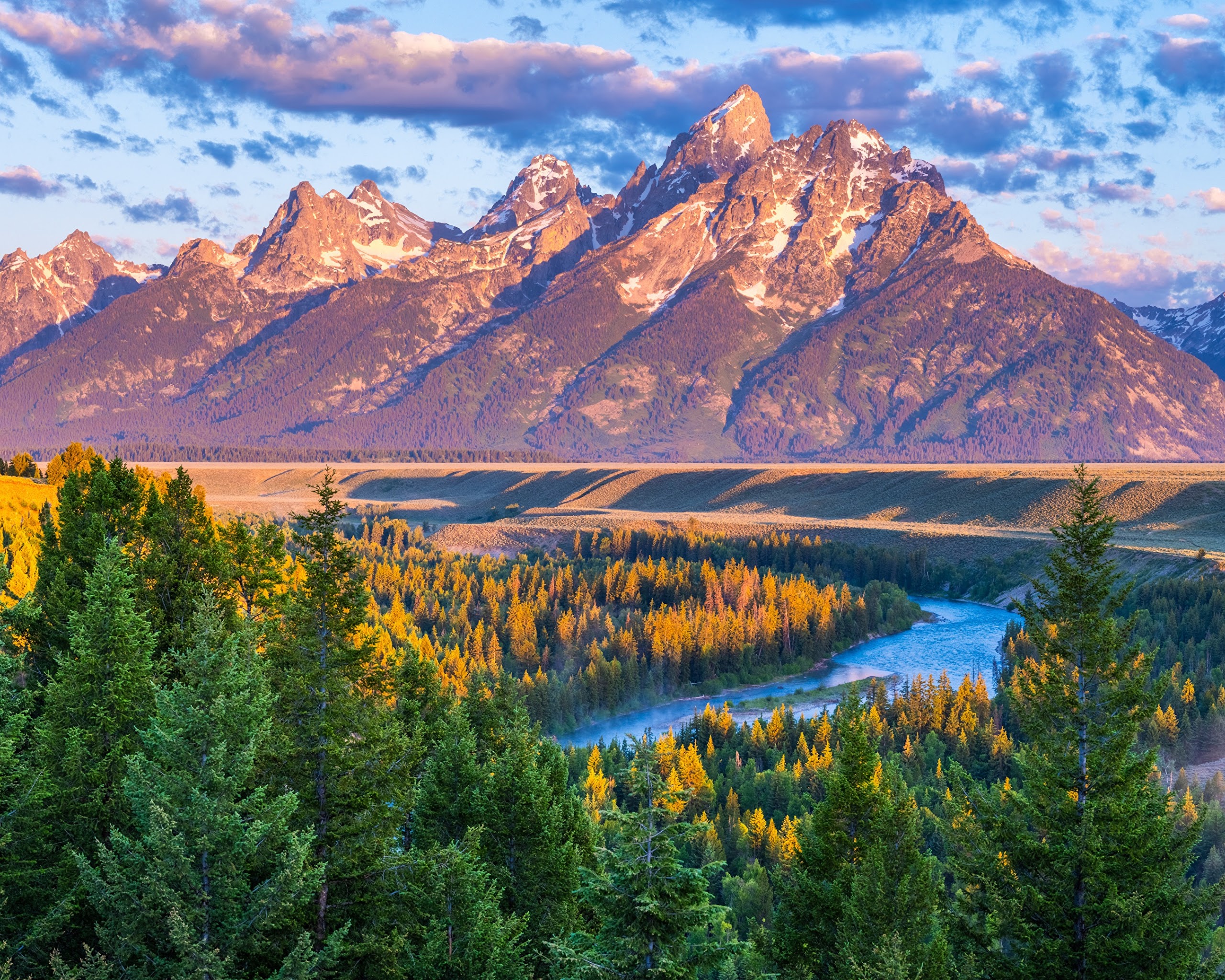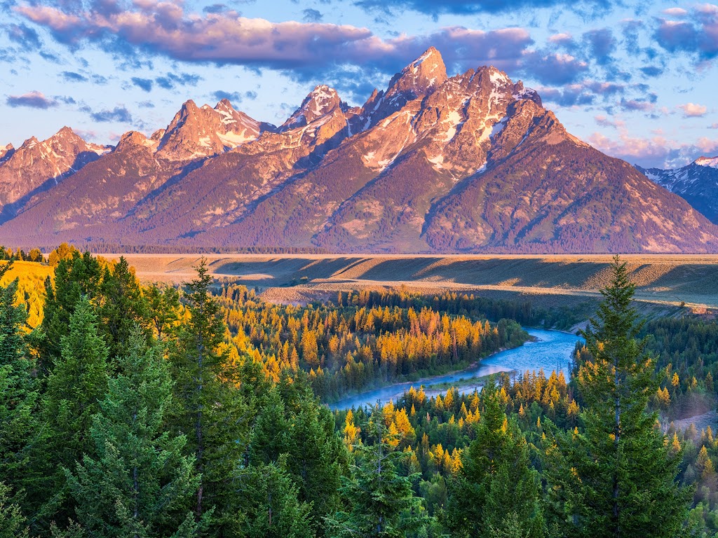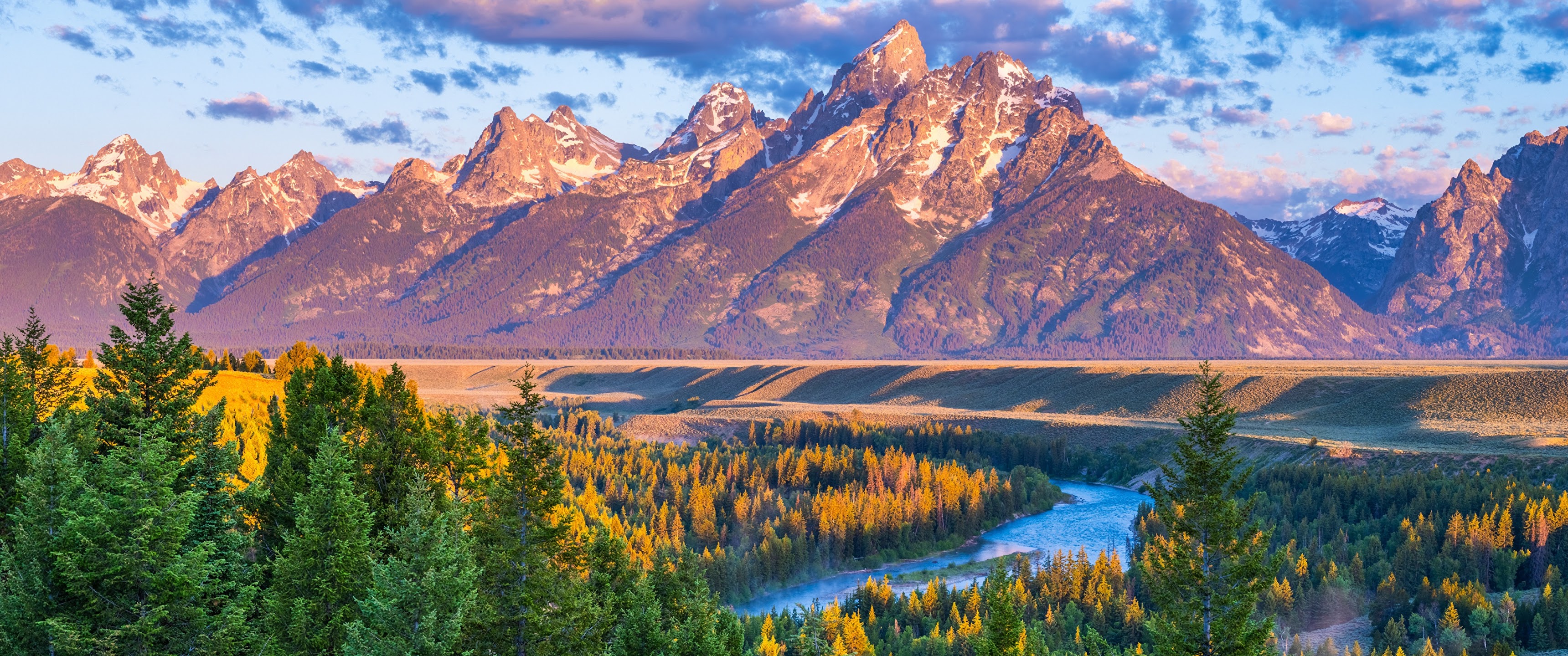 Mountain Range, River Scene, Forest View, Scenic Landscape 4K Desktop and Mobile Wallpaper Background with a maximum resolution of 3840x2160 px.