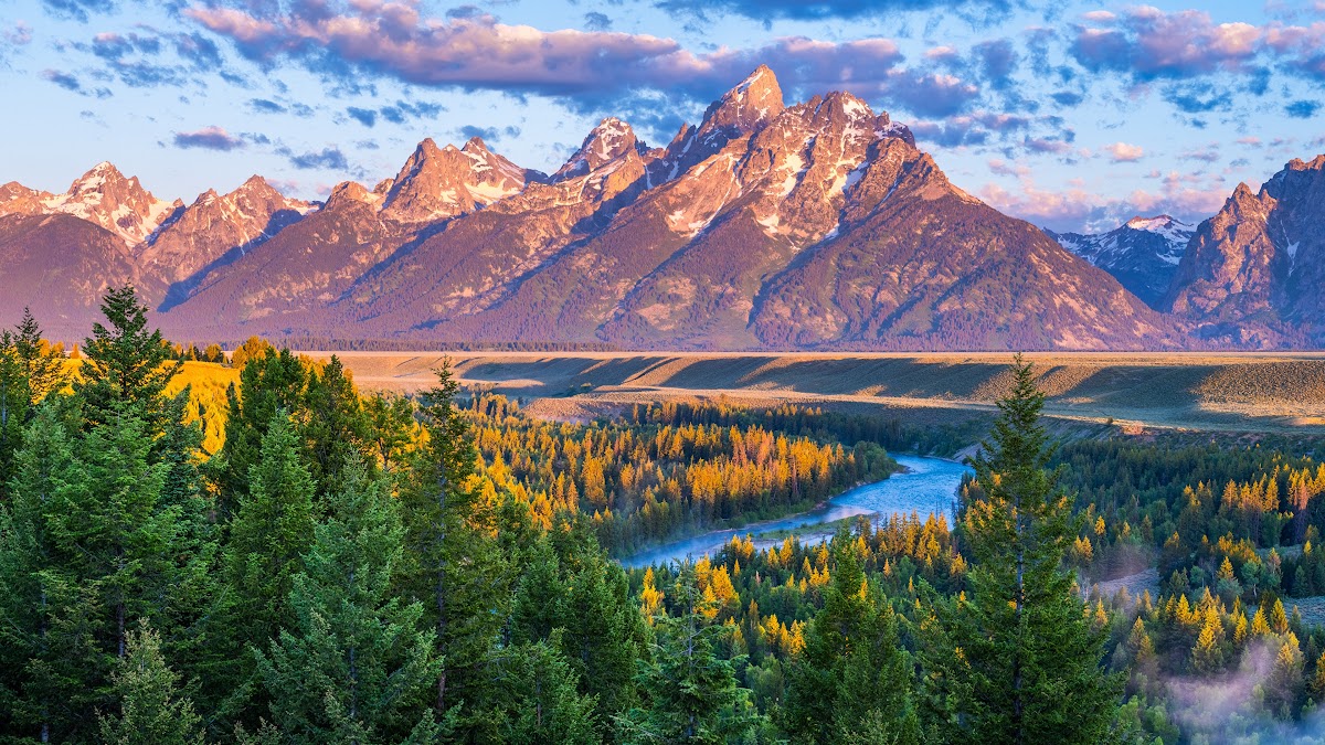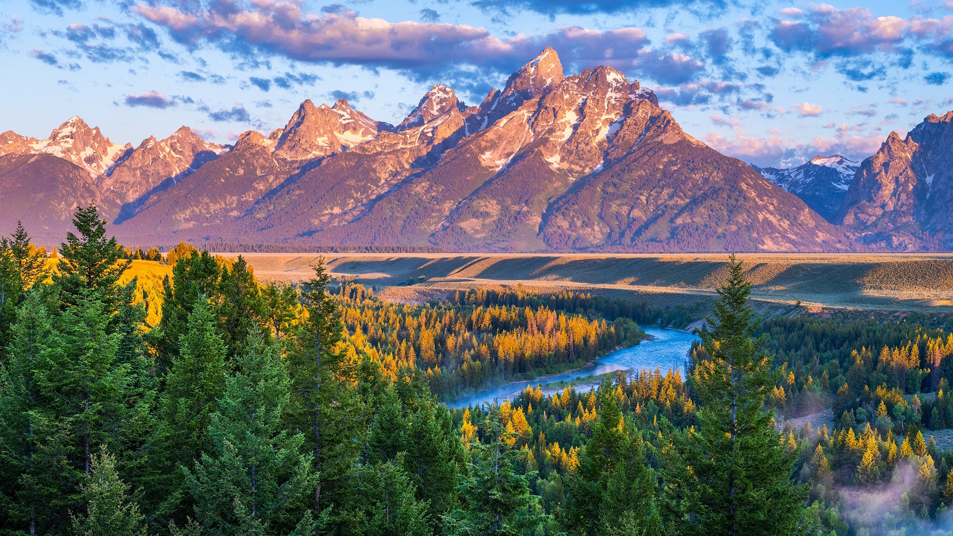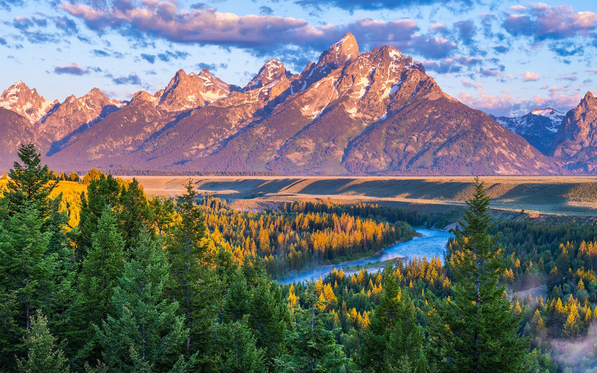Mountain Range, River Scene, Forest View, Scenic Landscape 4K Desktop Wallpaper