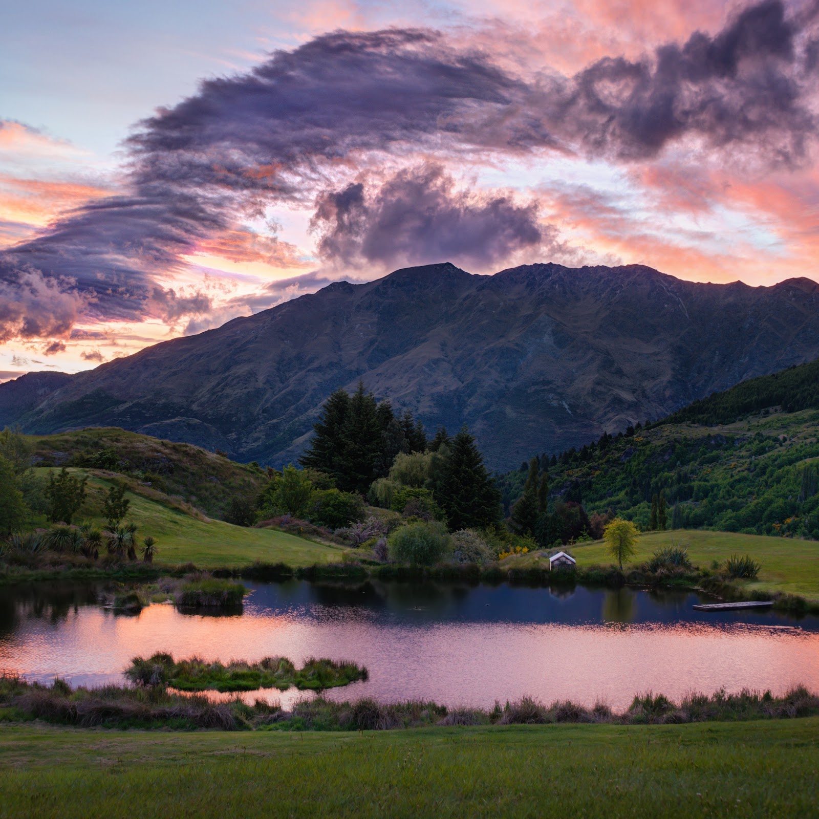 Mountain, Sunset, Lake, Landscape 4K Desktop and Mobile Wallpaper Background with a maximum resolution of 3840x2160 px.