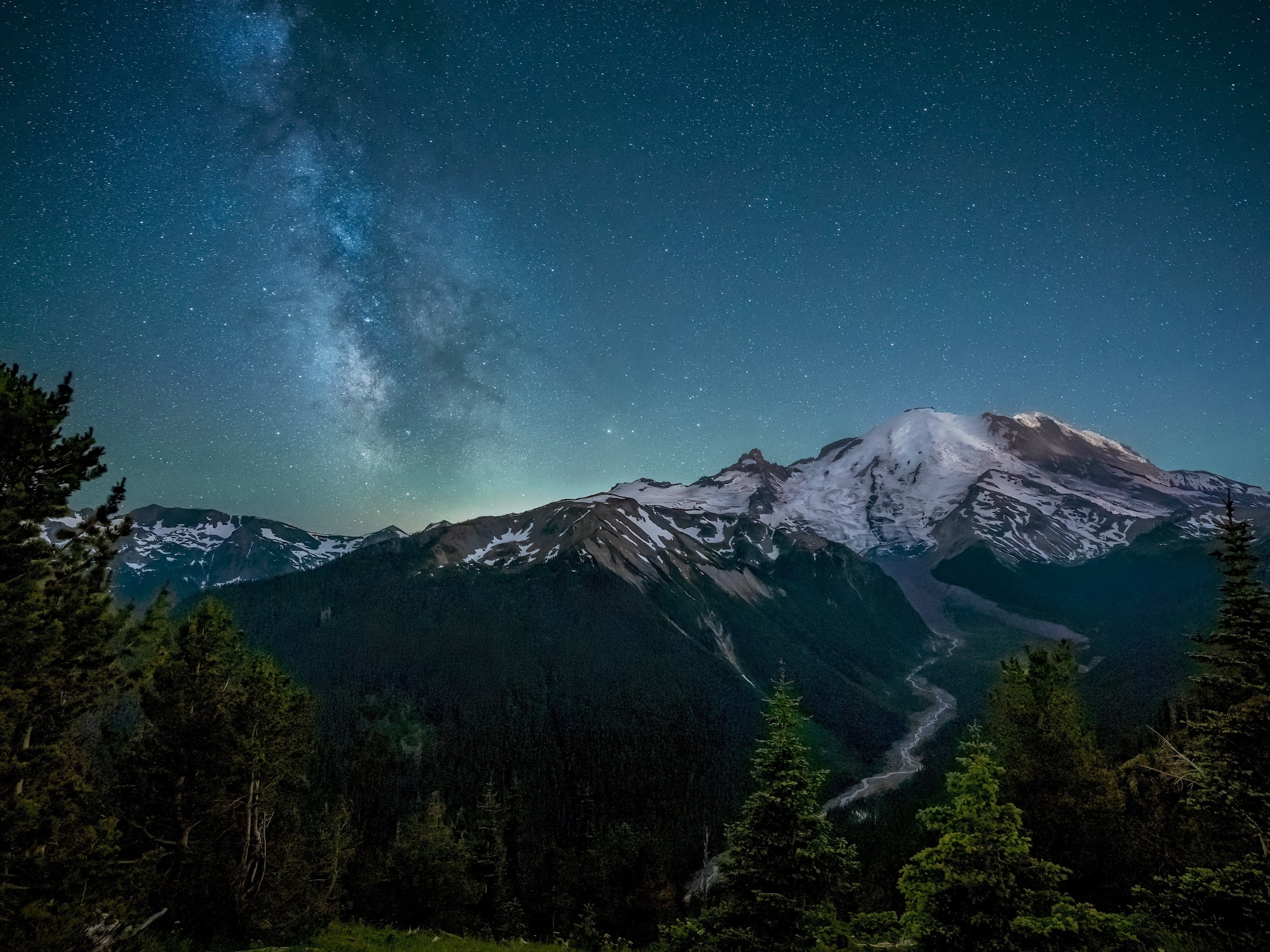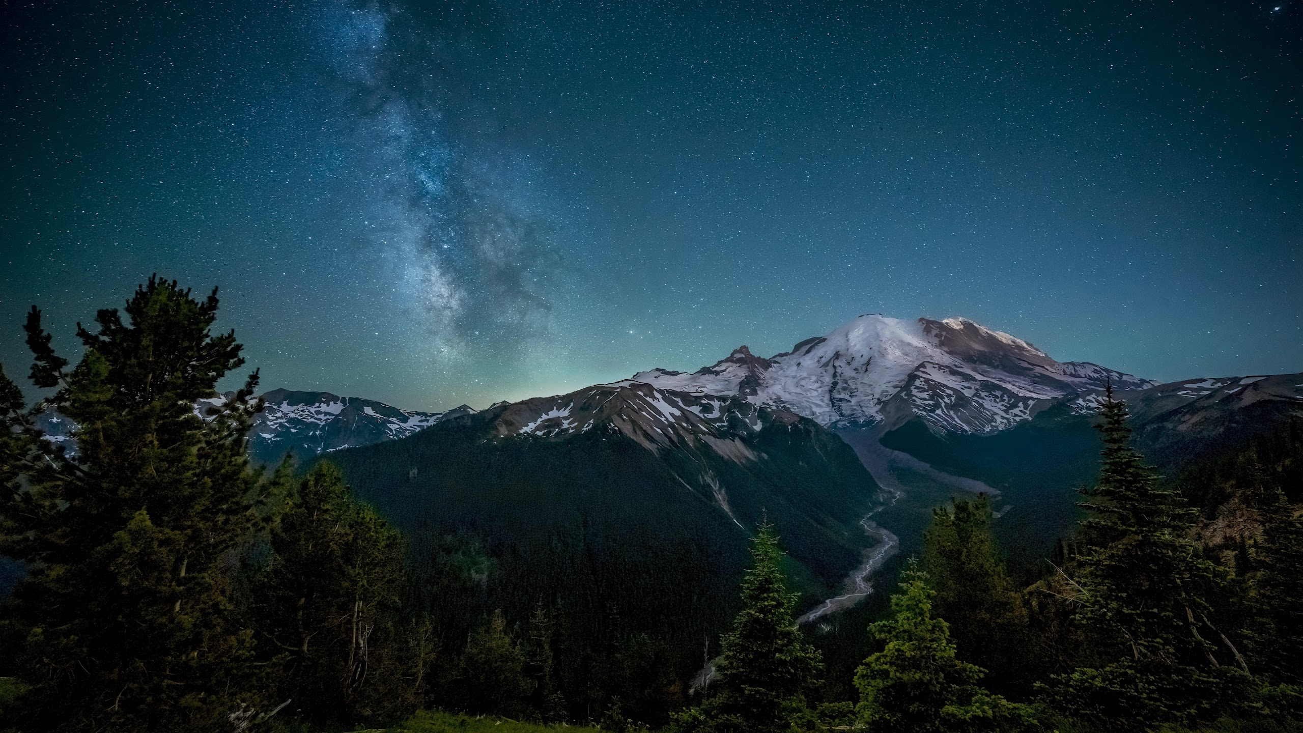 Nightscape, Milky Way, Mountain, Starry Sky 4K Desktop and Mobile Wallpaper Background with a maximum resolution of 3840x2160 px.