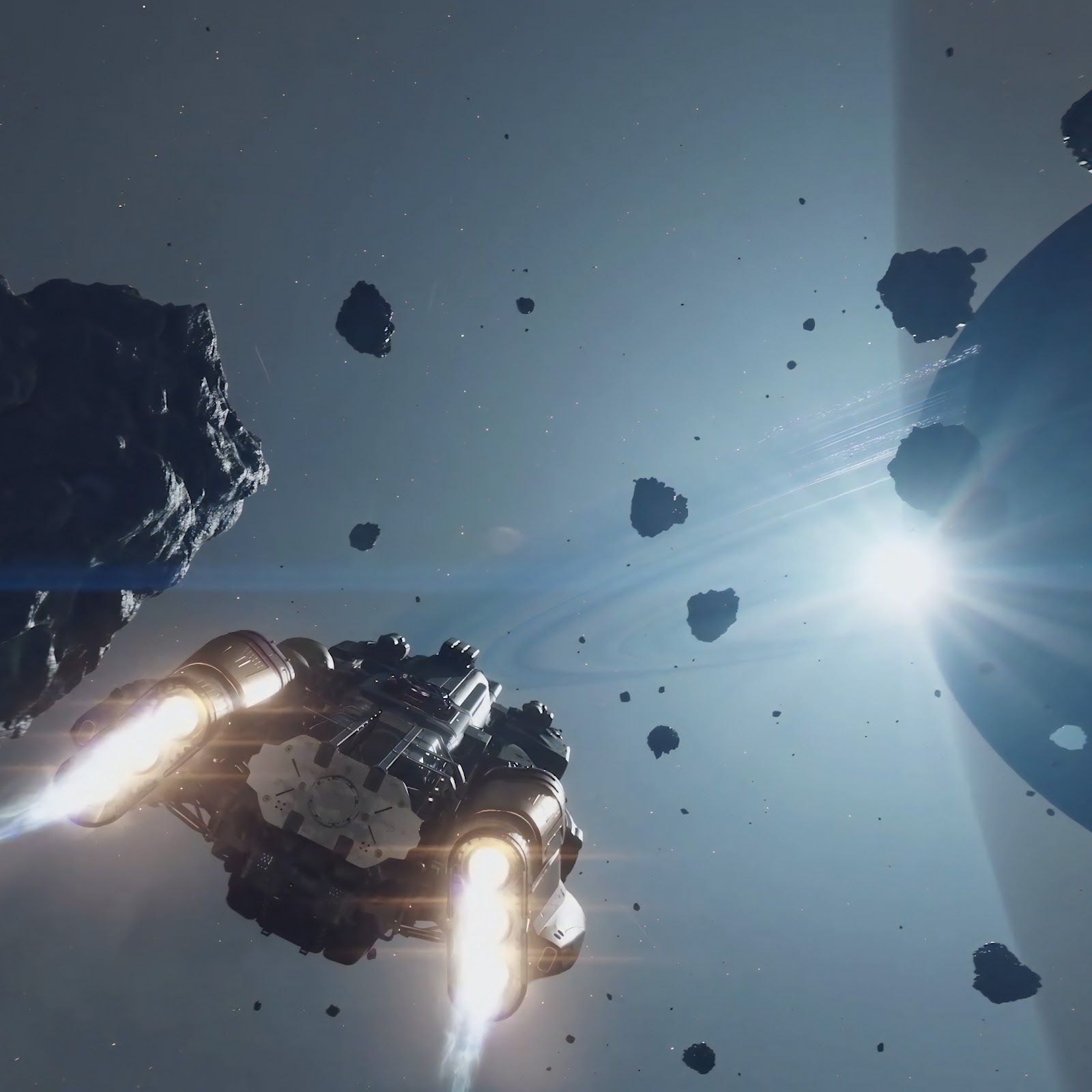 Spaceship, Asteroids, Planet, Spaceflight 4K Desktop Wallpaper