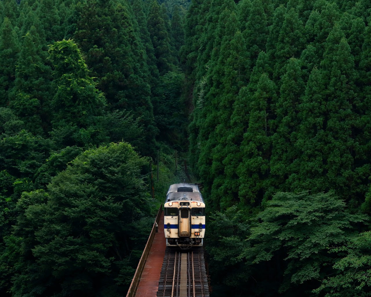 Train, Forest, Scenery, Railroad 5K Desktop Wallpaper