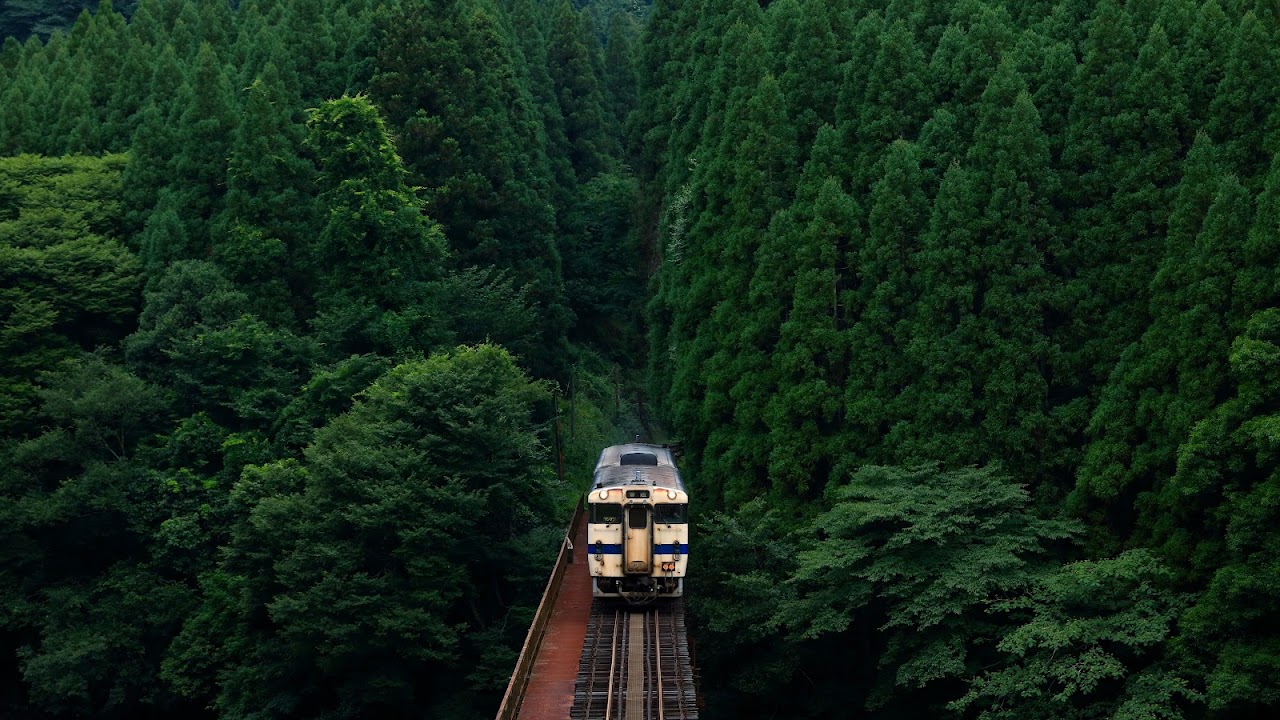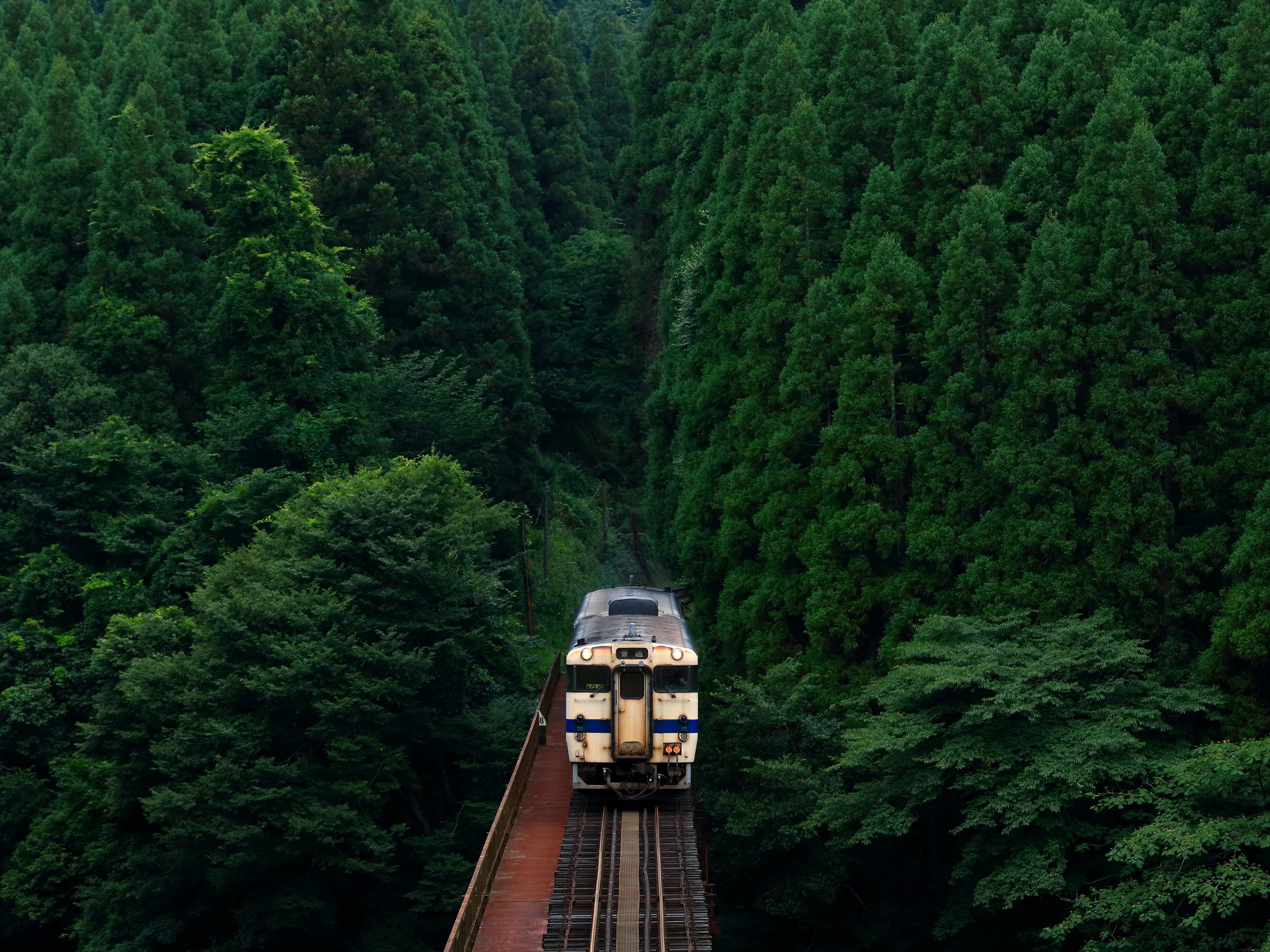 Train, Forest, Scenery, Railroad 5K Desktop and Mobile Wallpaper Background with a maximum resolution of 5120x2880 px.