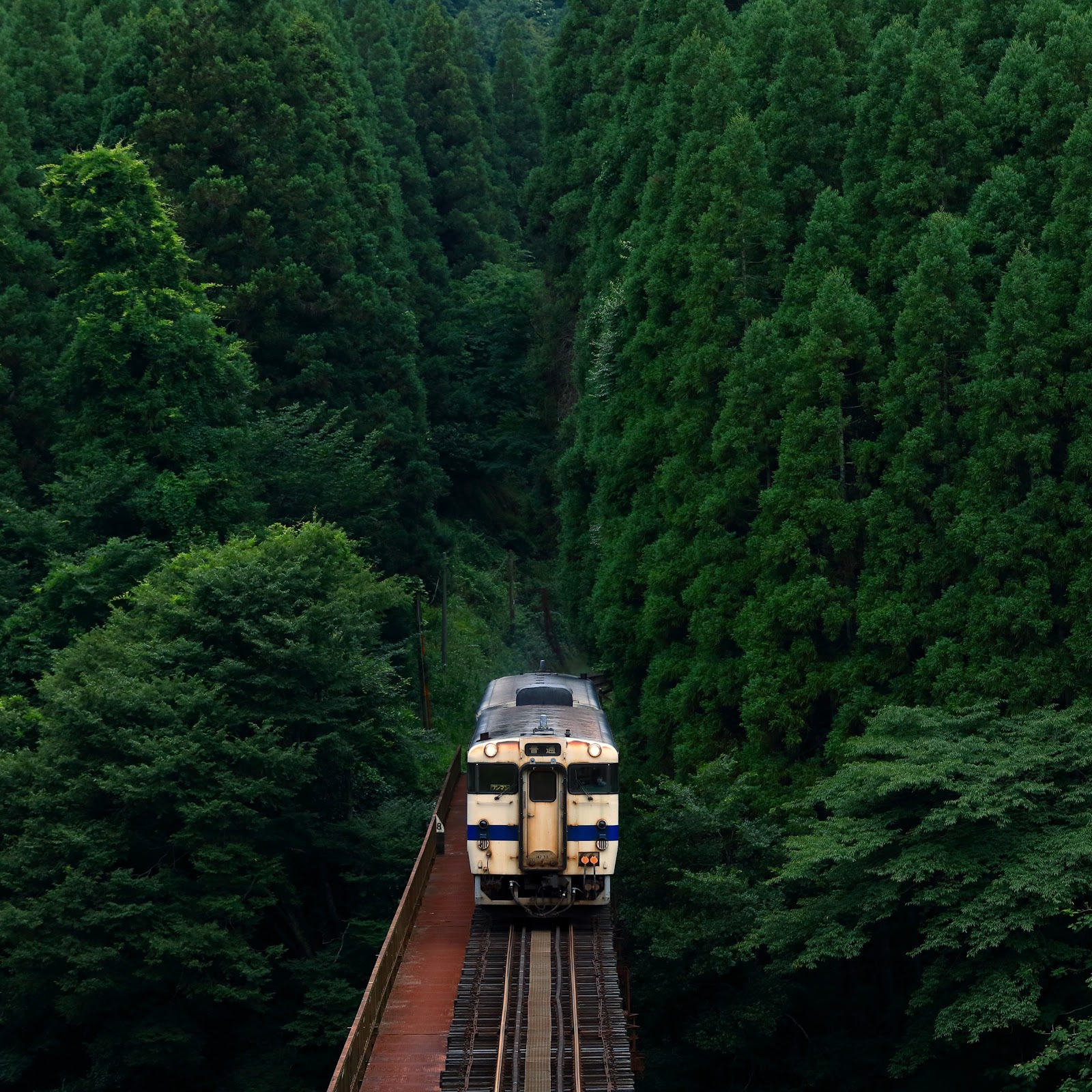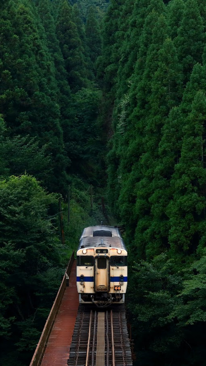 Train, Forest, Scenery, Railroad 5K Desktop and Mobile Wallpaper Background with a maximum resolution of 5120x2880 px.