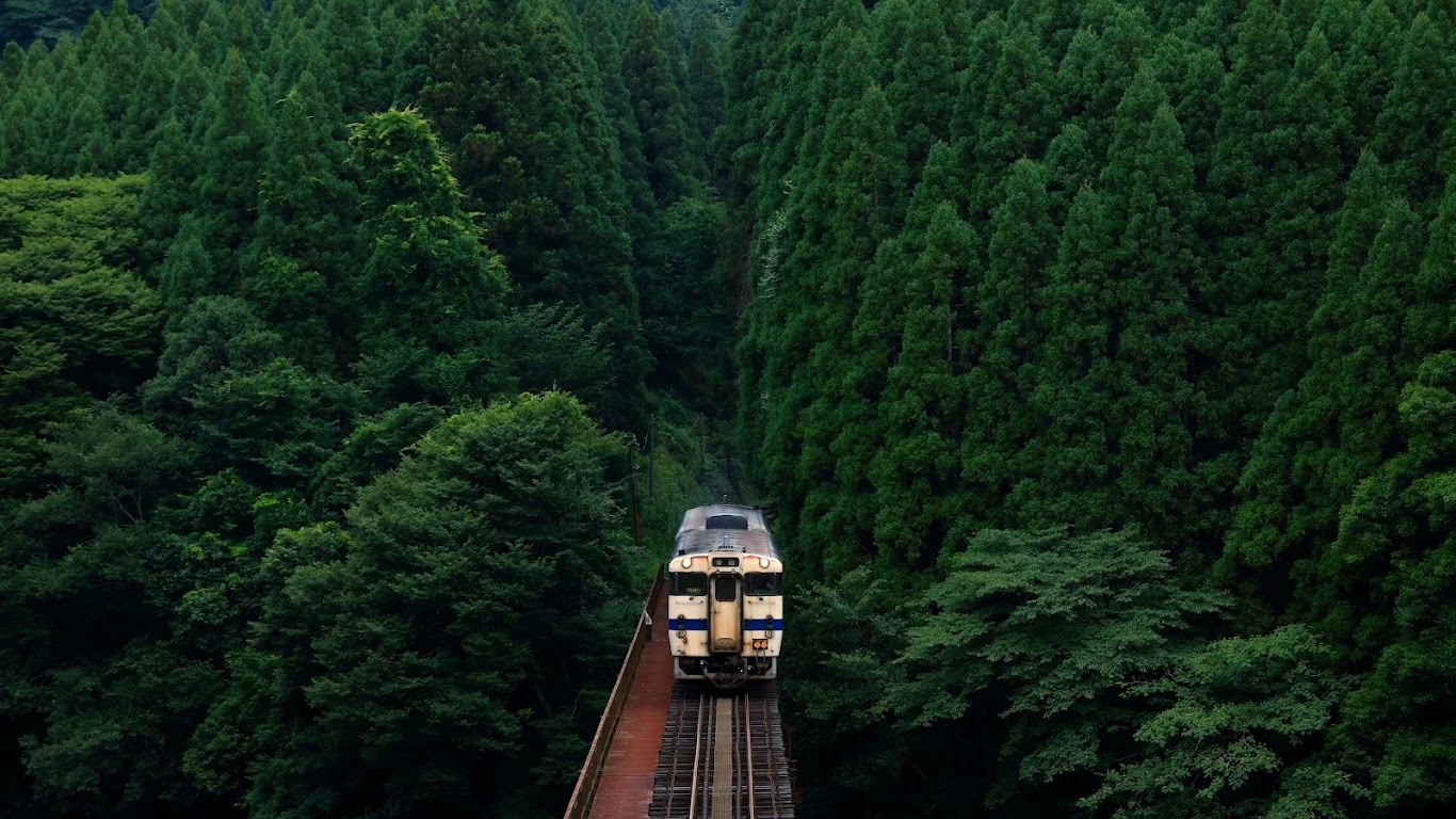Train, Forest, Scenery, Railroad 5K Desktop Wallpaper