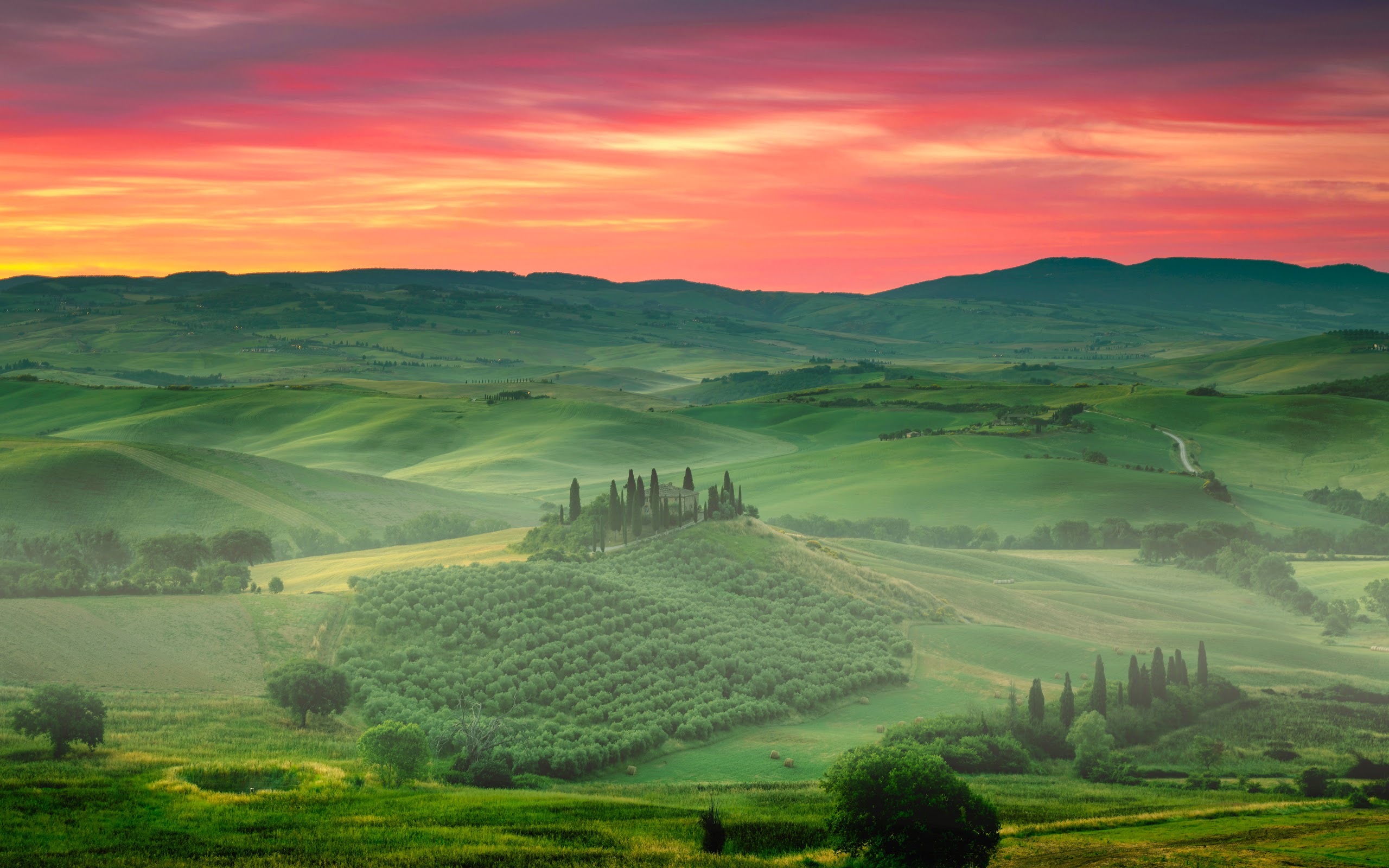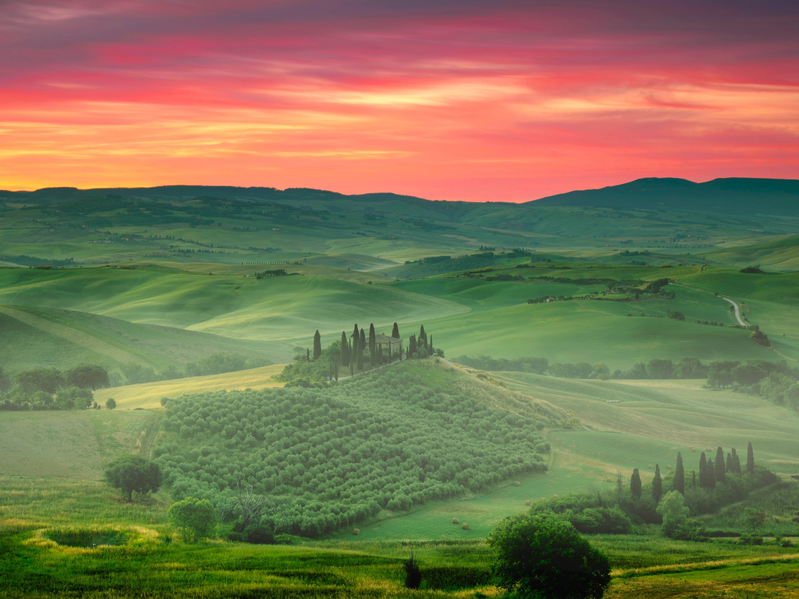 Tuscan Landscape, Italy, Sunset, Rolling Hills 5K Desktop Wallpaper