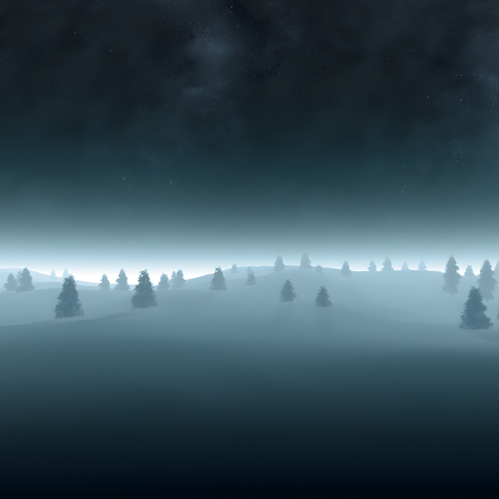Winter Landscape, Night Sky, Foggy Forest, Digital Art 4K Desktop and Mobile Wallpaper Background with a maximum resolution of 3840x2160 px.