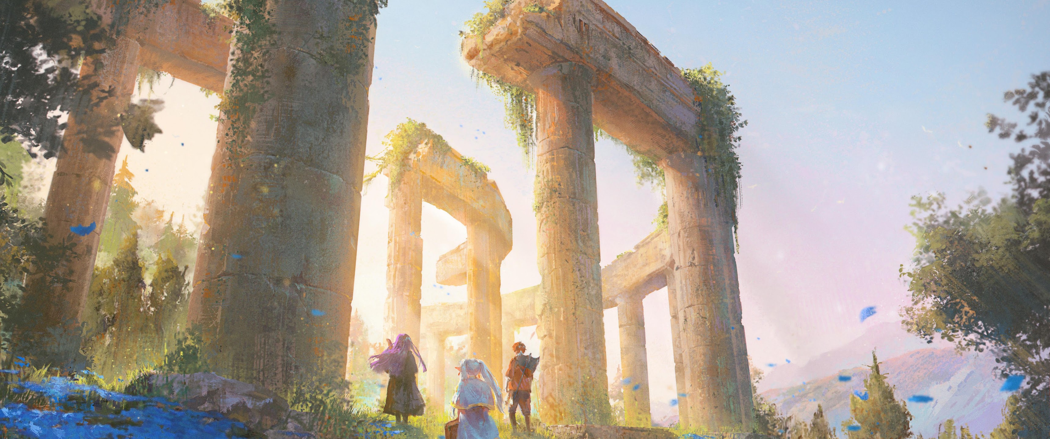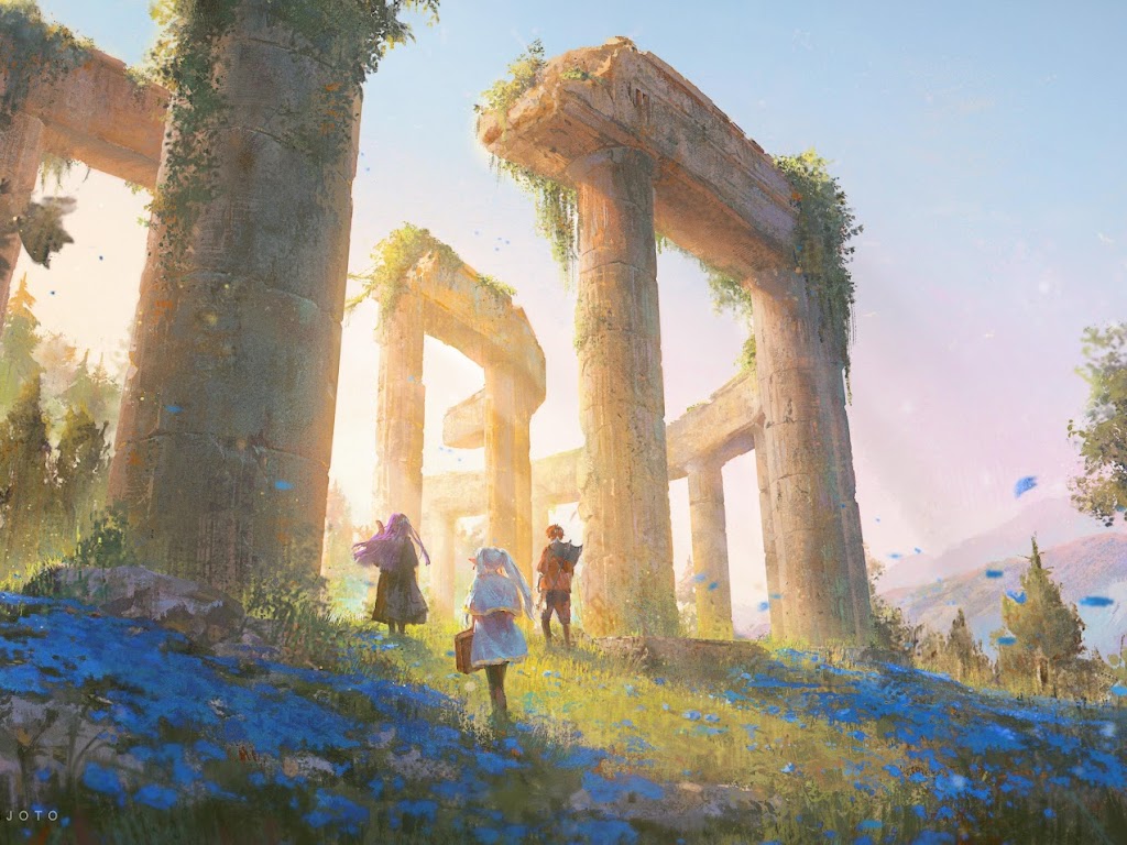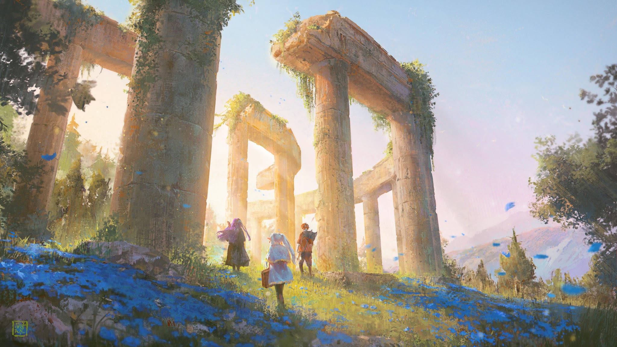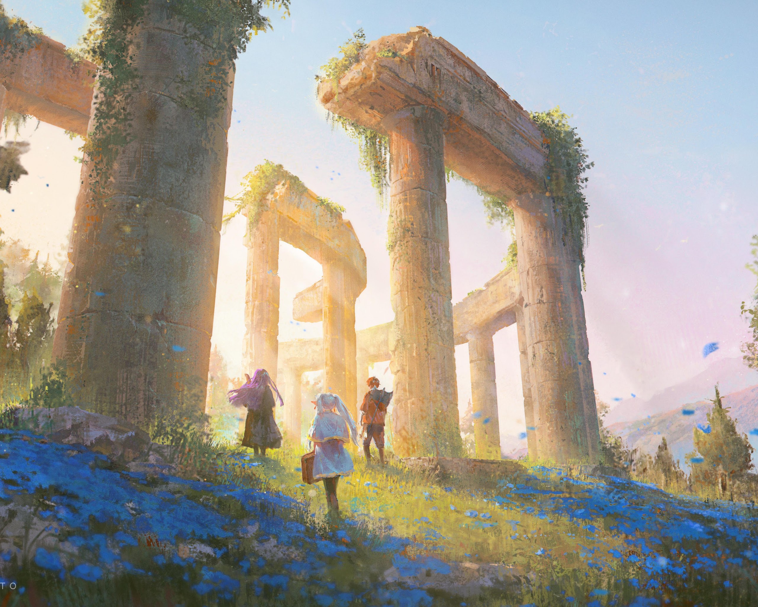 Ancient Ruins, Fantasy Art, Landscape Painting, Anime Art 4K Desktop and Mobile Wallpaper Background with a maximum resolution of 4961x2961 px.