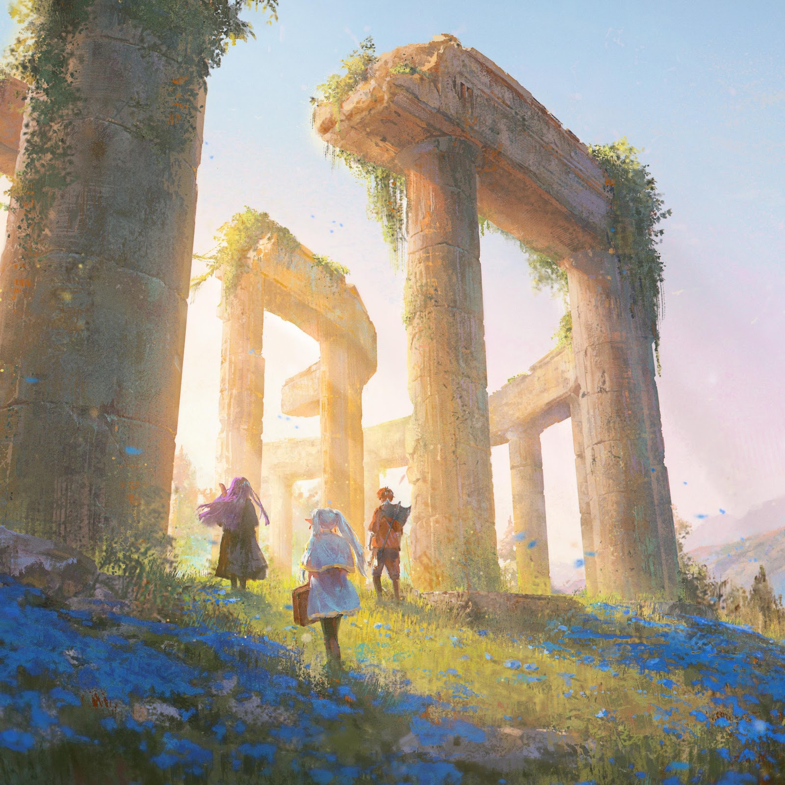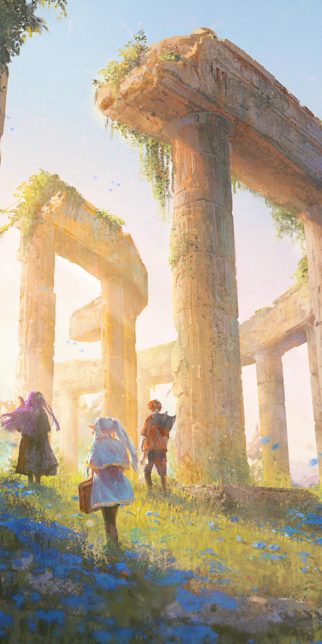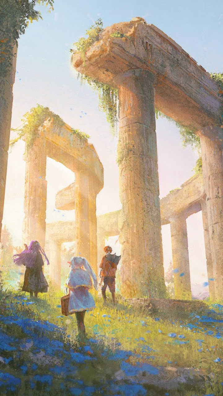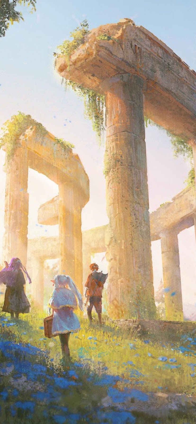 Ancient Ruins, Fantasy Art, Landscape Painting, Anime Art 4K Desktop and Mobile Wallpaper Background with a maximum resolution of 4961x2961 px.