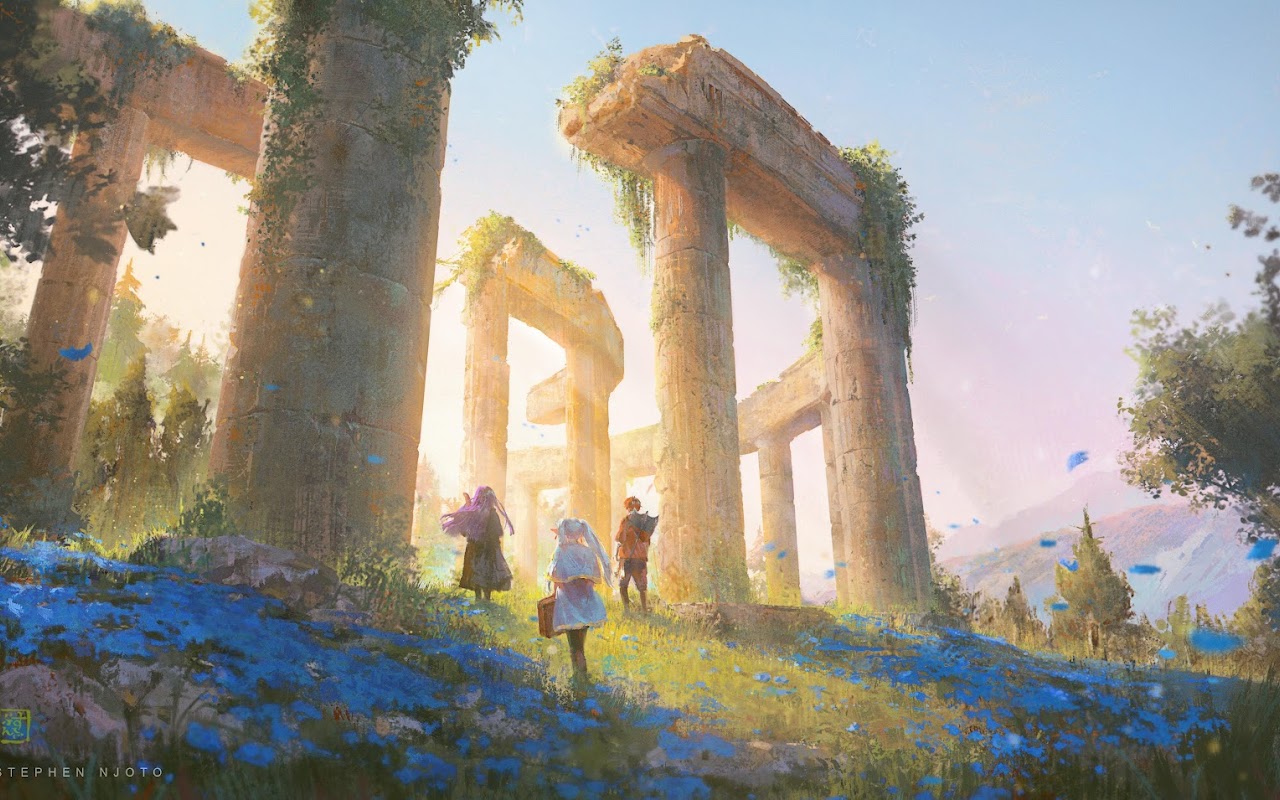 Ancient Ruins, Fantasy Art, Landscape Painting, Anime Art 4K Desktop Wallpaper