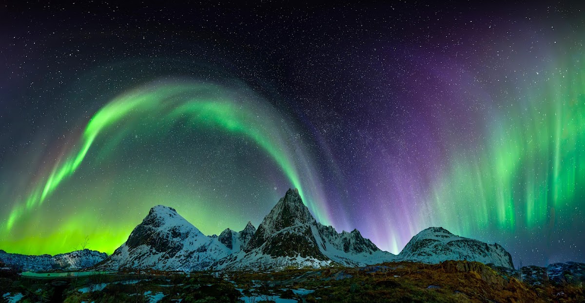 Aurora Borealis, Northern Lights, Lofoten, Night Sky 10K Desktop and Mobile Wallpaper Background with a maximum resolution of 11574x6000 px.