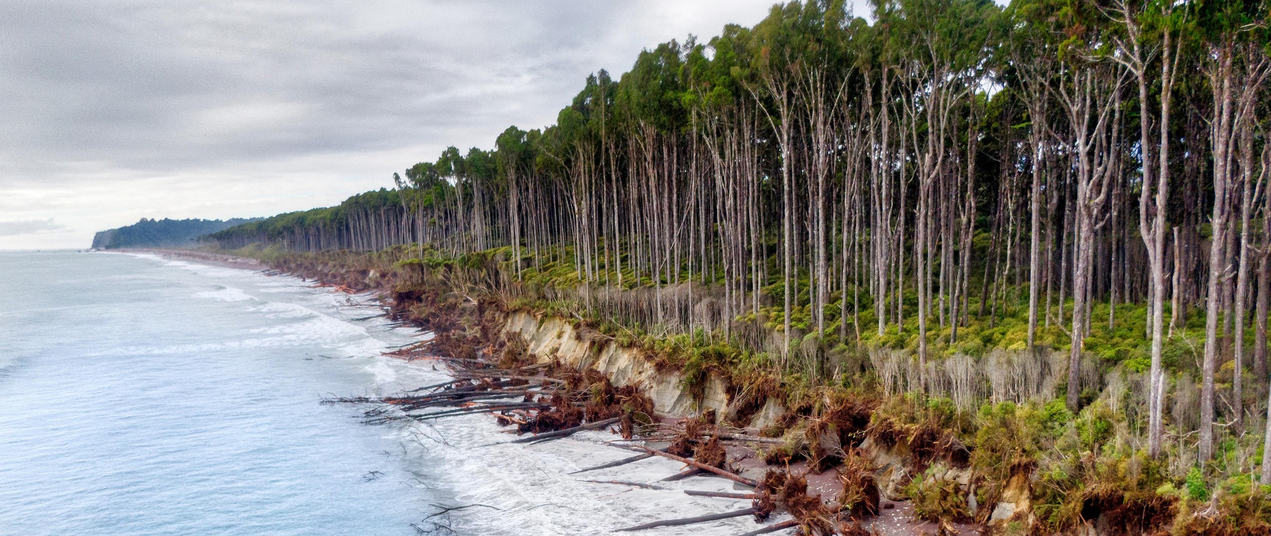 Coastal Erosion, Forest Edge, Beach Scenery, Climate Change 4K Desktop and Mobile Wallpaper Background with a maximum resolution of 3840x2160 px.