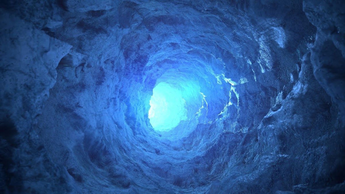 Ice Cave, Frozen Tunnel, Glacier, Blue Cavern 5K Desktop Wallpaper