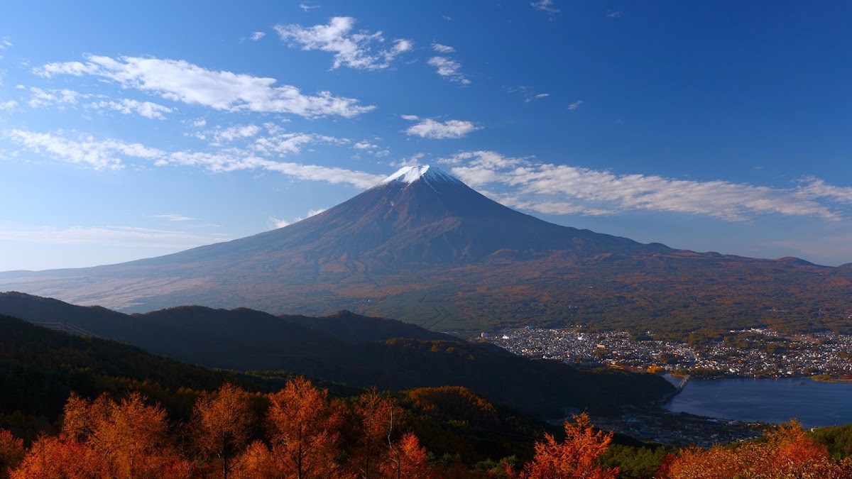 Mount Fuji, Japan, Landscape, Autumn Foliage 5K Desktop and Mobile Wallpaper Background with a maximum resolution of 5120x2880 px.