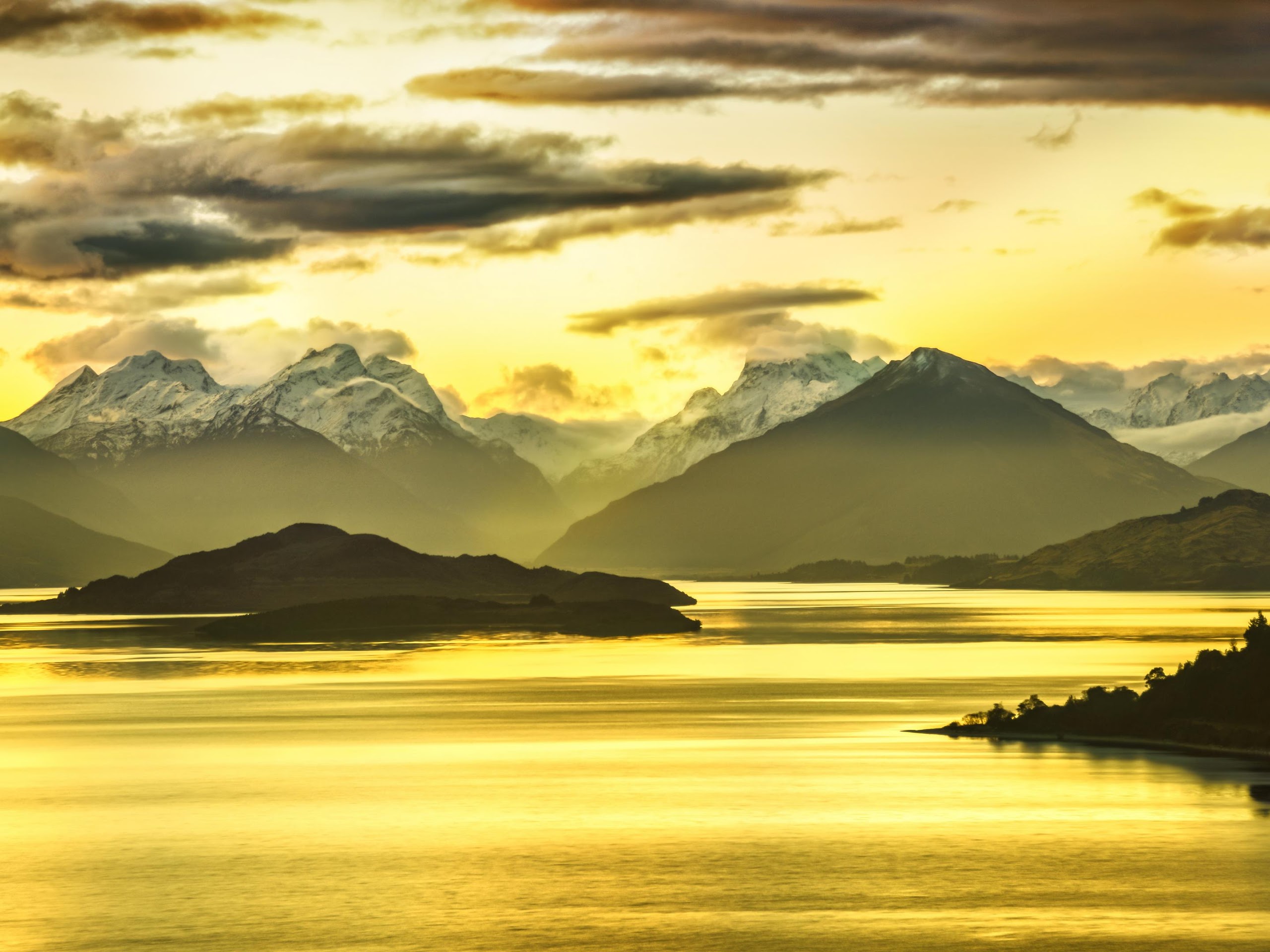 Mountain Landscape, Lake Scenery, Golden Hour, Nature Photography 4K Desktop and Mobile Wallpaper Background with a maximum resolution of 3840x2160 px.