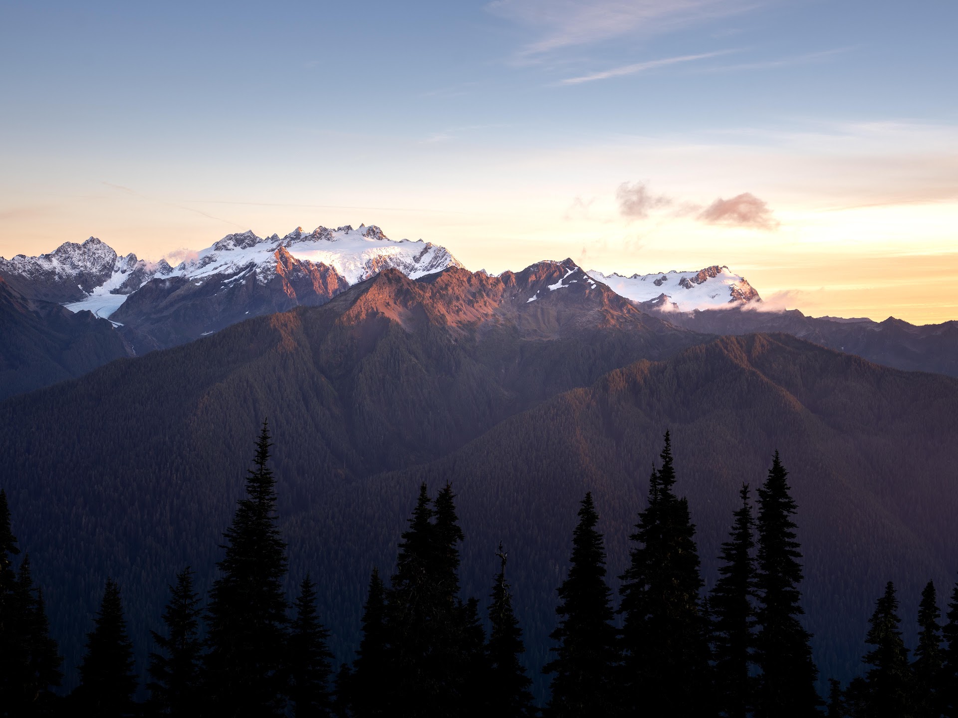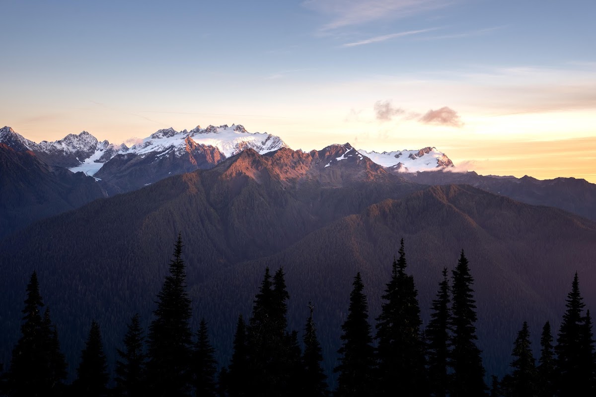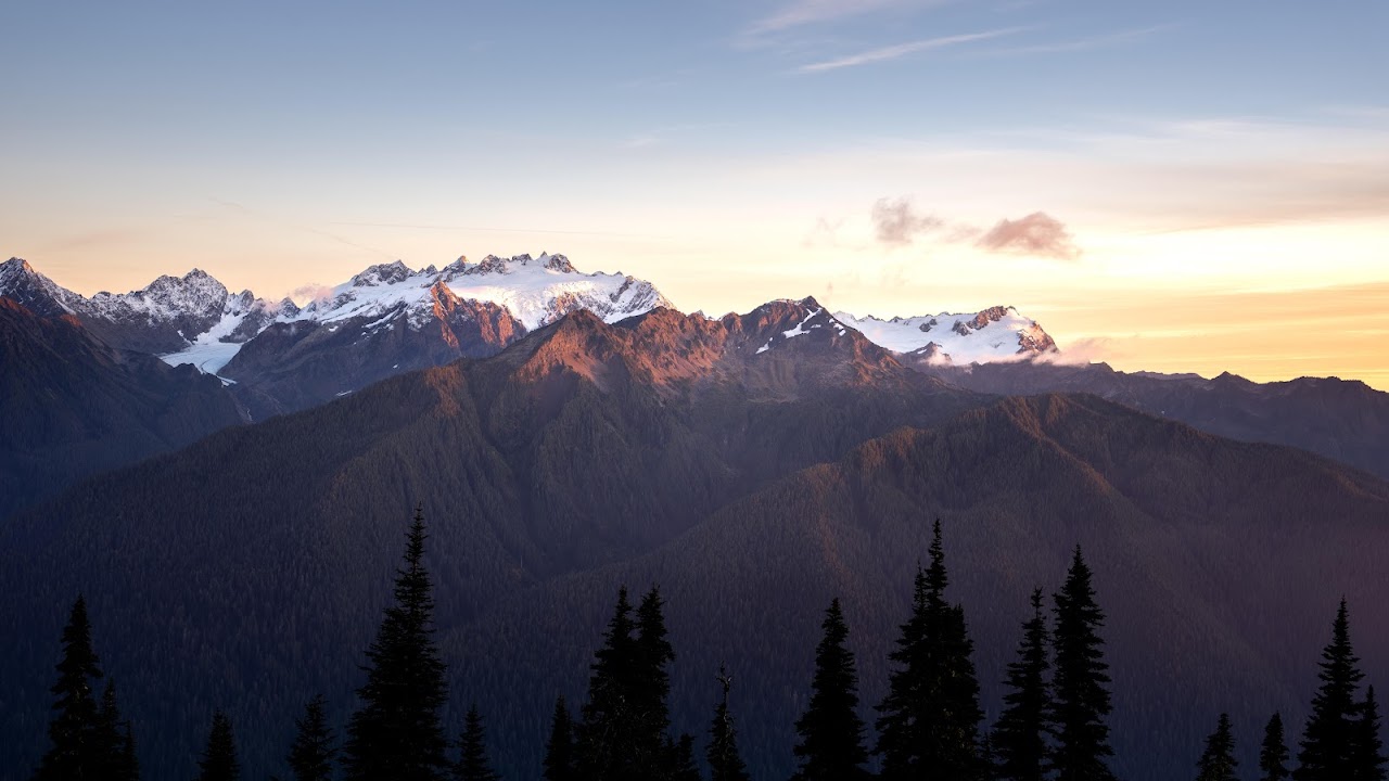 Mountain Range, Evergreen Forest, Sunrise Landscape, Olympic National Park 8K Desktop Wallpaper