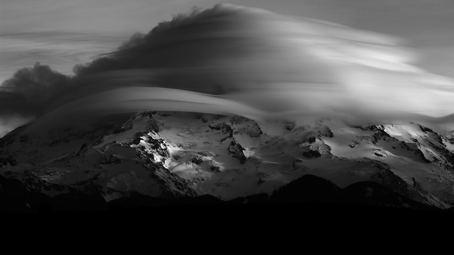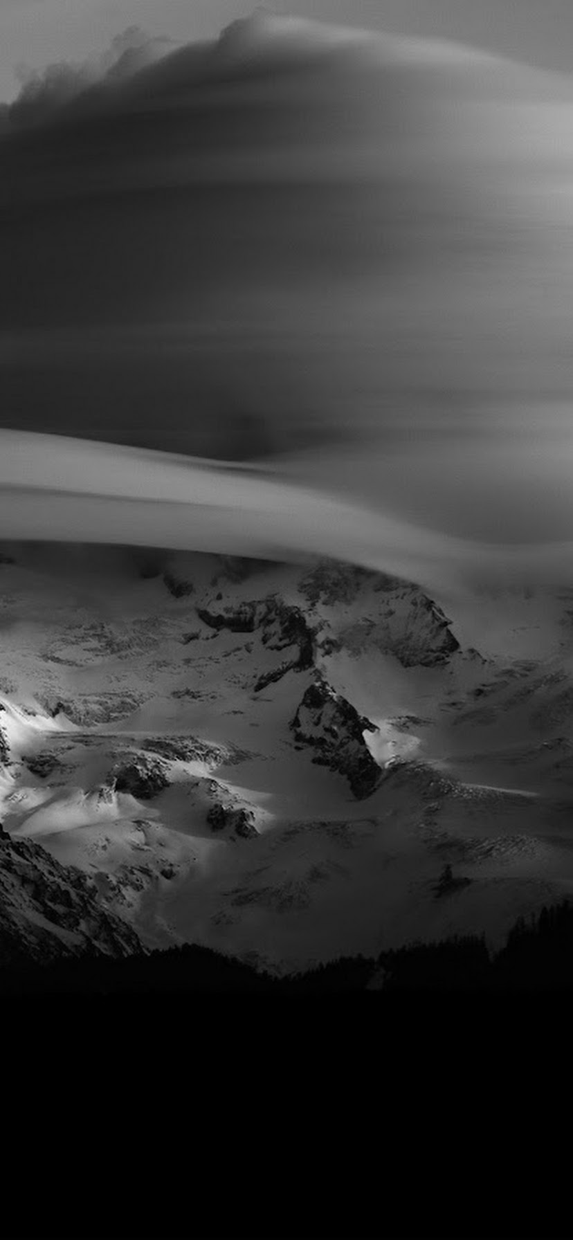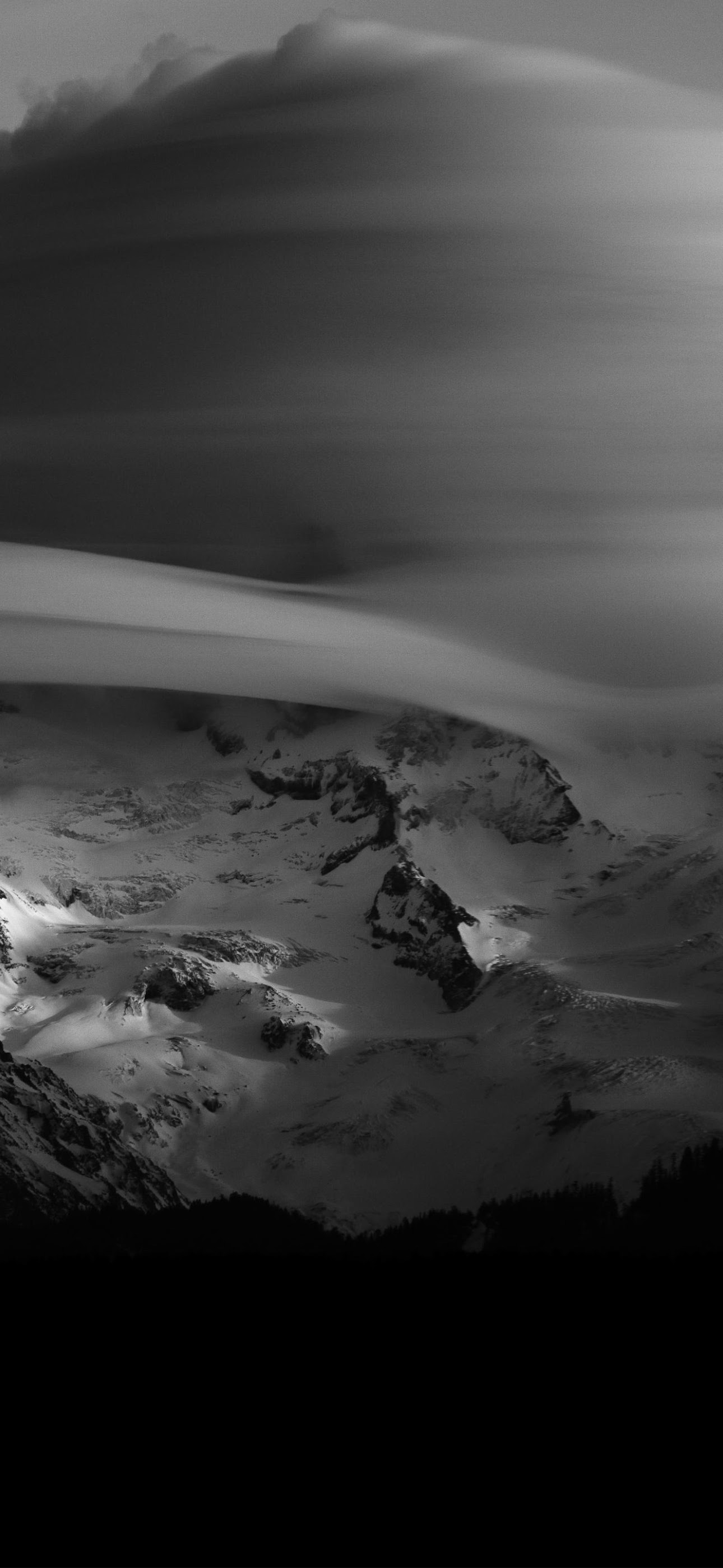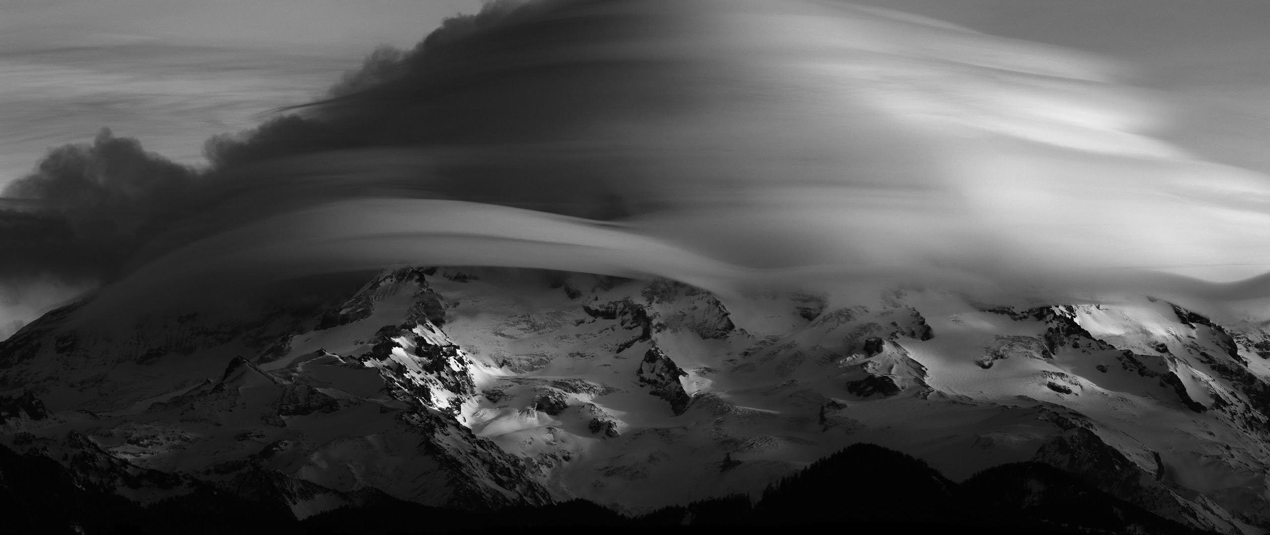 Mountainscape, Black And White, Cloudscape, Winter Scenery 5K Desktop Wallpaper