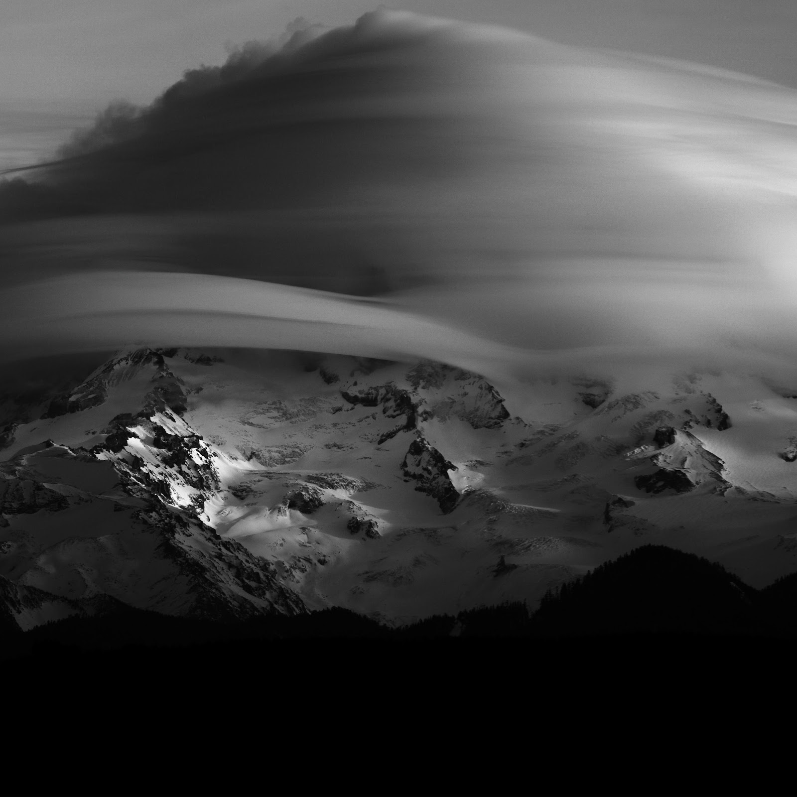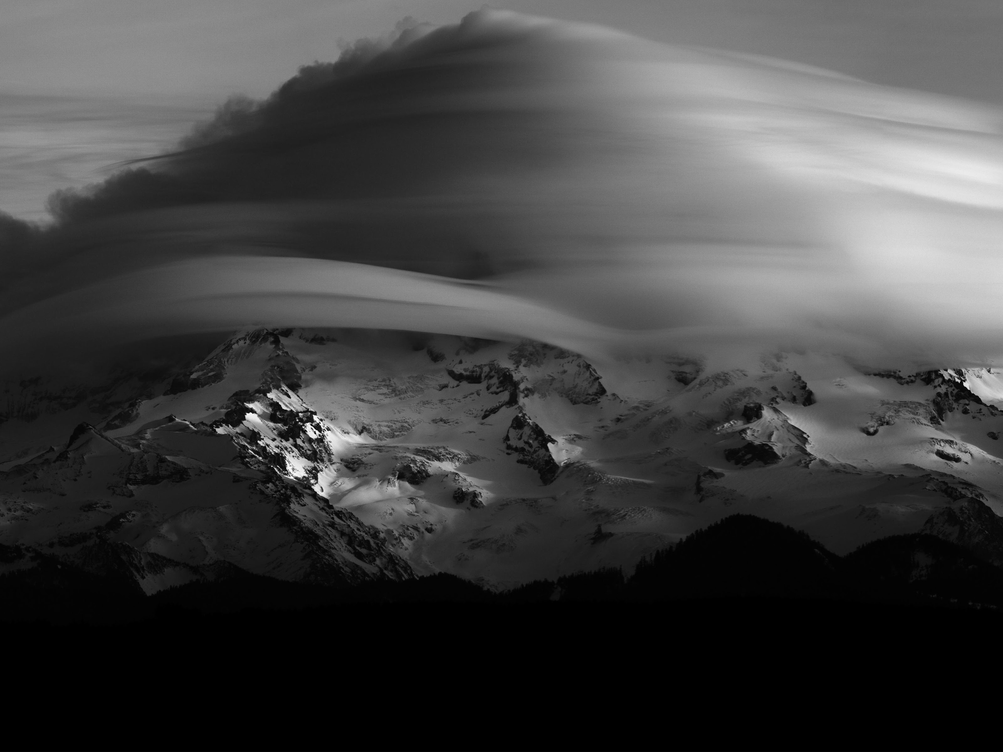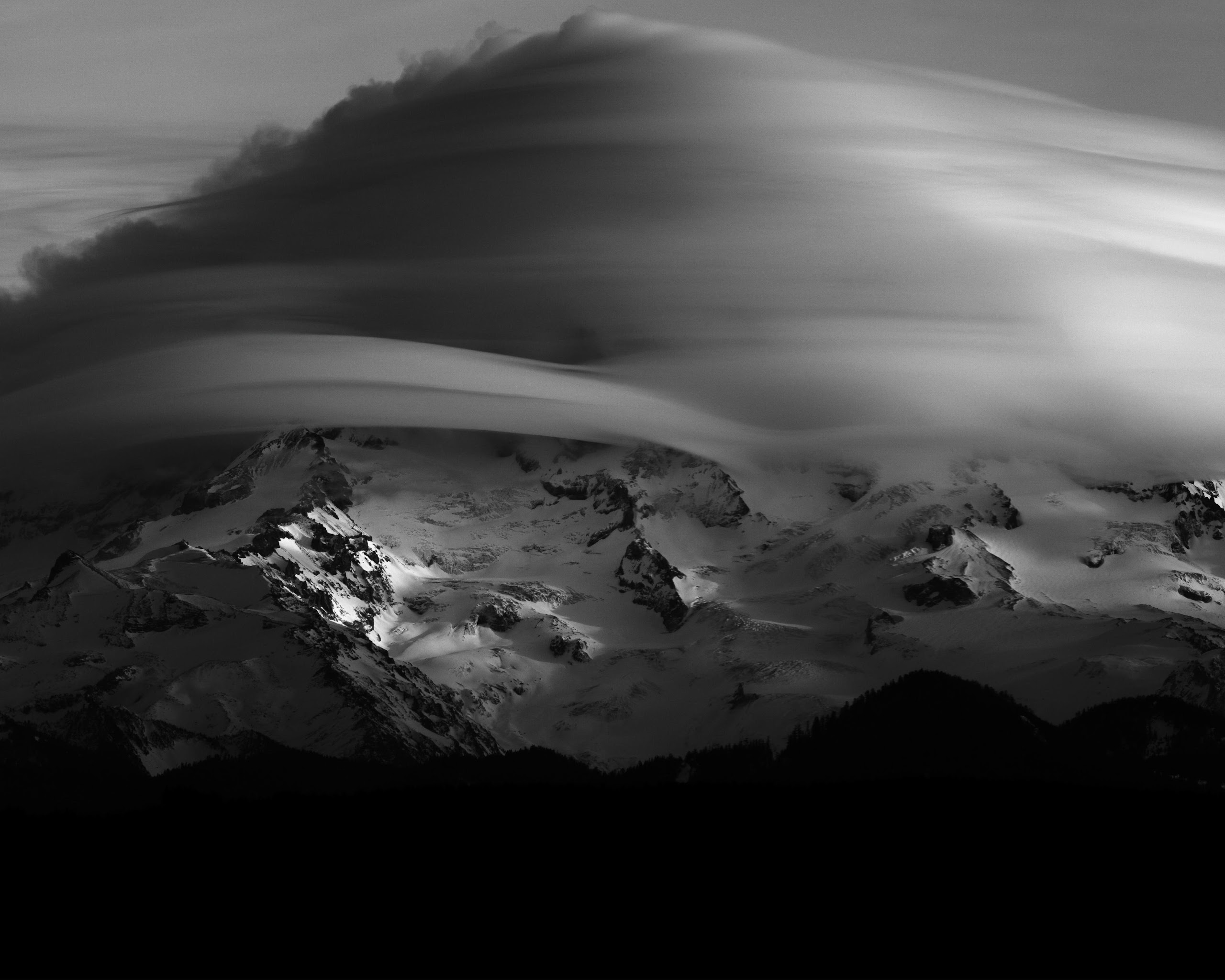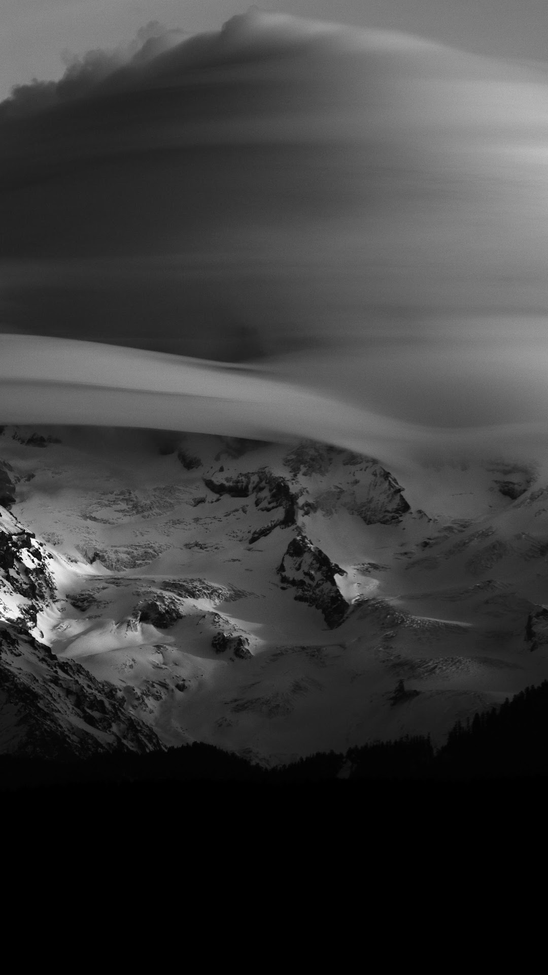 Mountainscape, Black And White, Cloudscape, Winter Scenery 5K Desktop Wallpaper