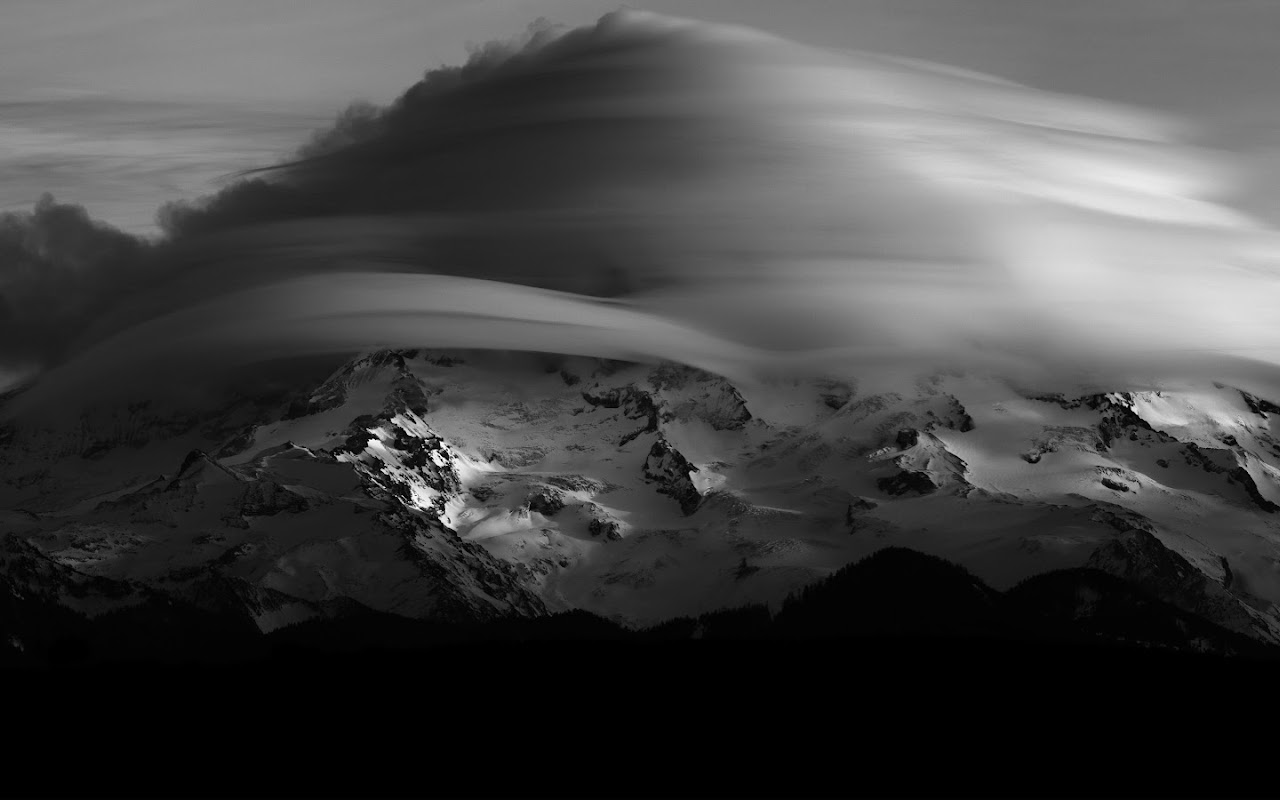 Mountainscape, Black And White, Cloudscape, Winter Scenery 5K Desktop and Mobile Wallpaper Background with a maximum resolution of 5120x2880 px.