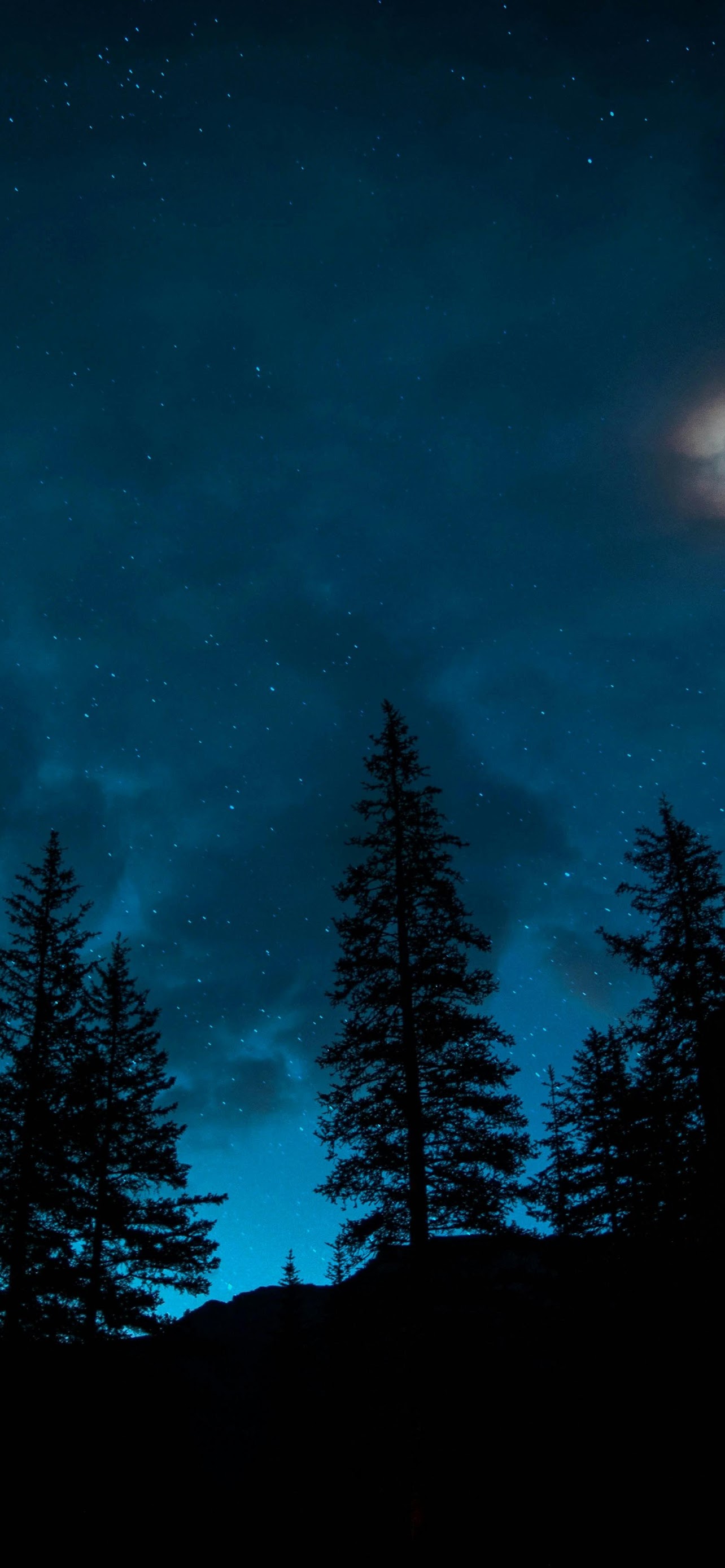 Night Sky, Pine Trees, Moonlight, Stars 5K Phone Wallpaper