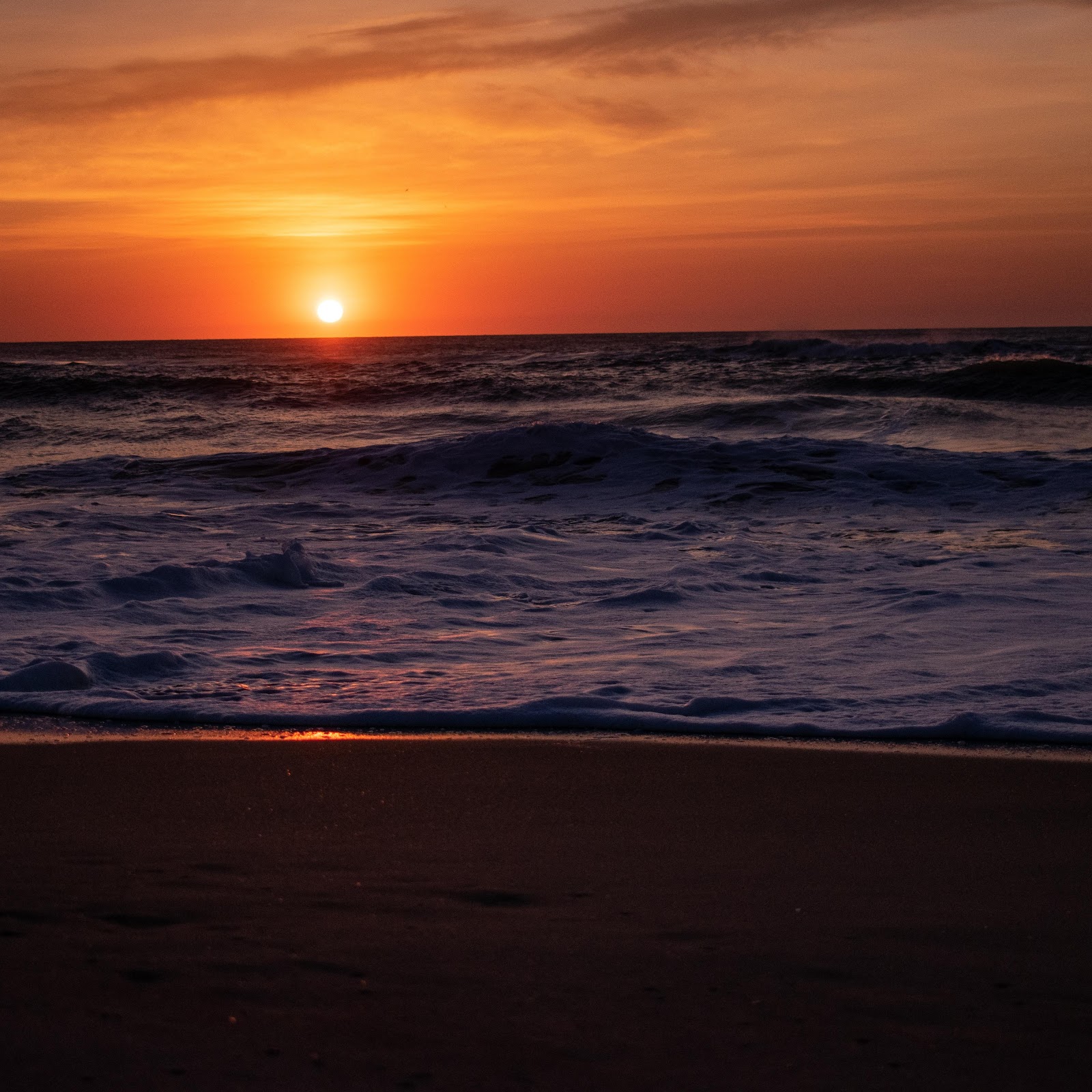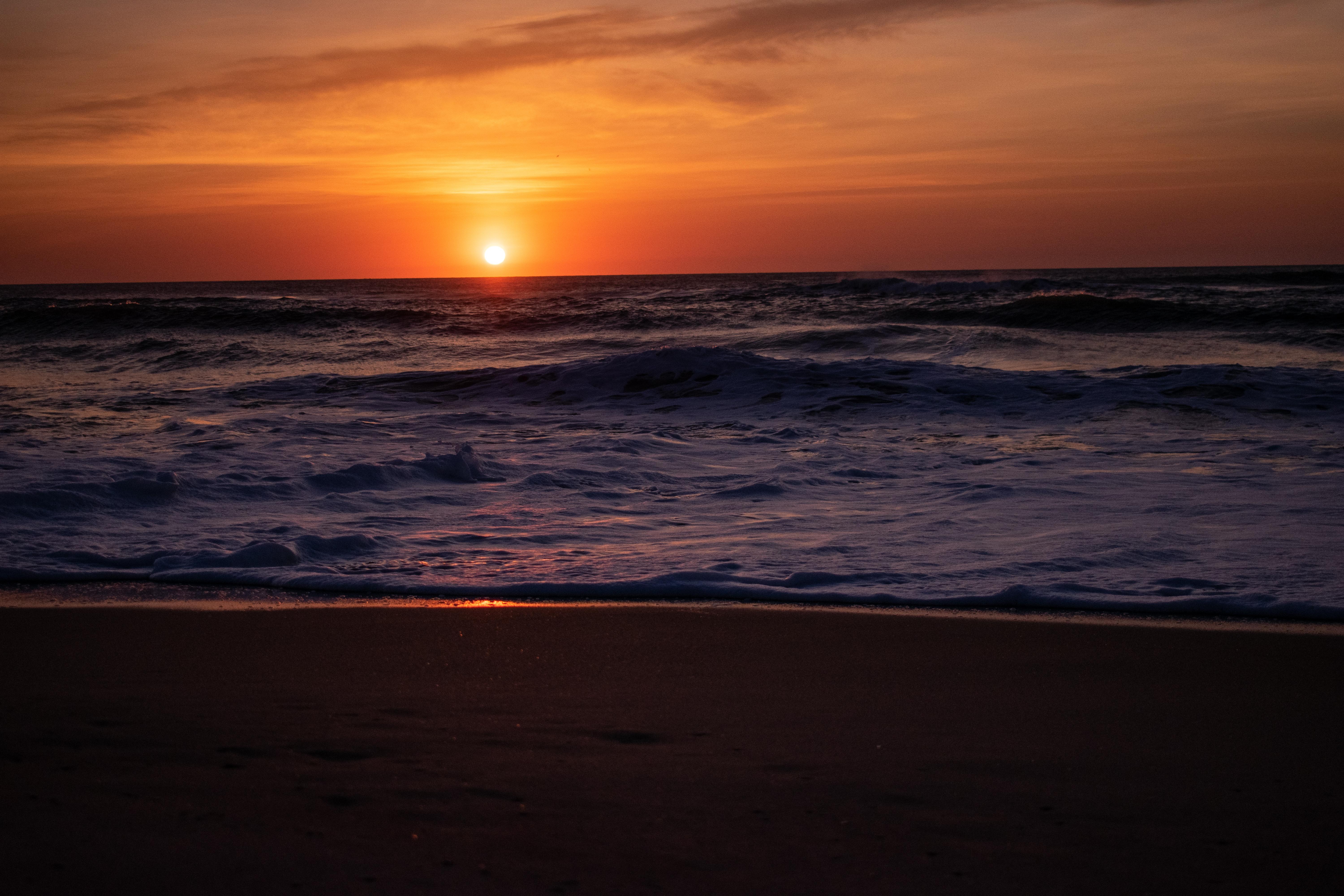 Ocean Sunset, Beach Scene, Golden Hour, Coastal Landscape 5K Desktop and Mobile Wallpaper Background with a maximum resolution of 6000x4000 px.