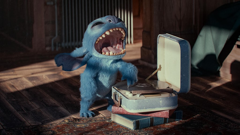 Stitch, Disney, Turntable, Record Player 4K Desktop Wallpaper
