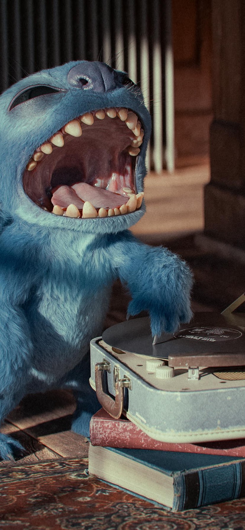 Stitch, Disney, Turntable, Record Player 4K Desktop and Mobile Wallpaper Background with a maximum resolution of 3840x2160 px.