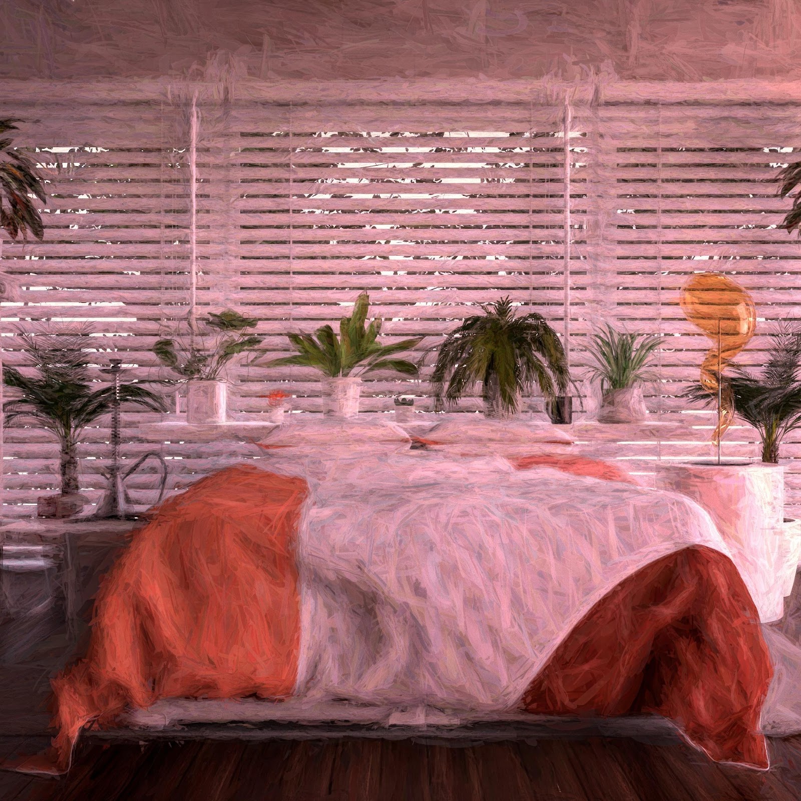 Bedroom, Interior Design, Plants, Home Decor 4K Desktop and Mobile Wallpaper Background with a maximum resolution of 3840x2160 px.