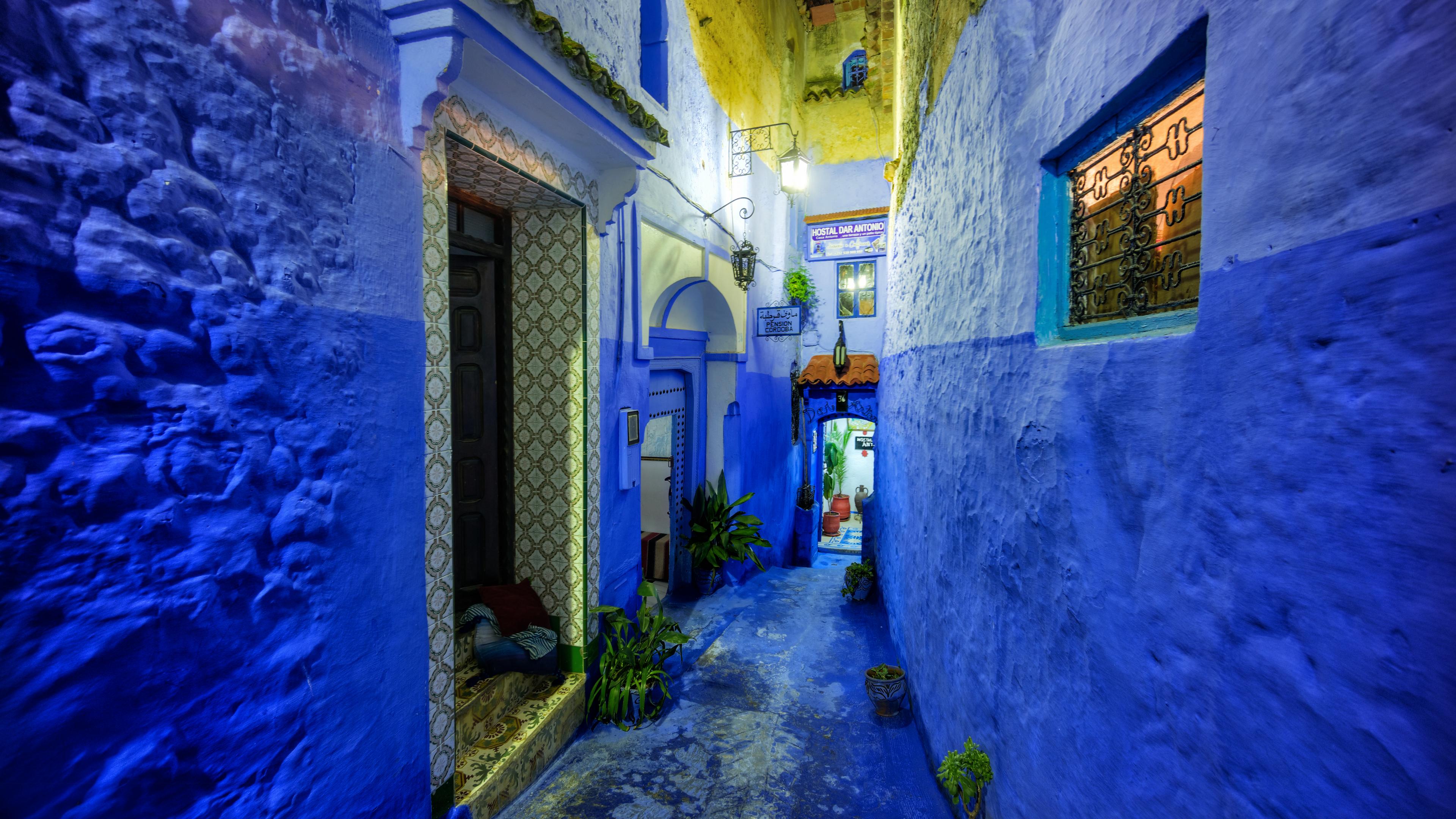 Chefchaouen, Blue City, Morocco, Alleyway 4K Desktop Wallpaper
