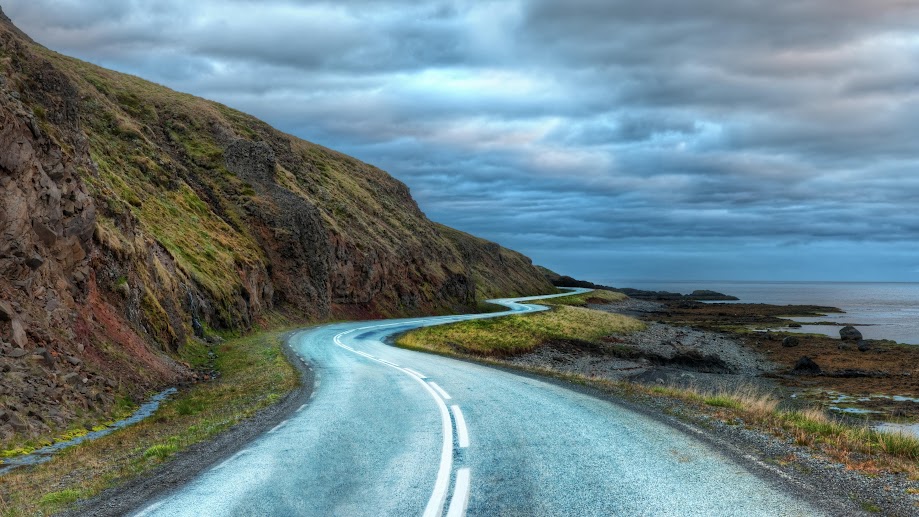 Coastal Road, Scenic Route, Mountain Pass, Iceland Landscape 4K Desktop Wallpaper